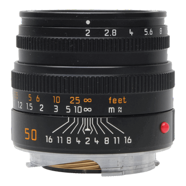 This Leica 50mm f2 Summicron-M Lens (Black, V5), #4156700, is in great condition with minor handling wear. I rate it cosmetically a (9). The focus and aperture rings are smooth, the aperture functions properly, and the glass is clean and clear with no haze, marks, or fungus. There are a few faint specks of dust inside, but they do not affect image quality. This lens includes front & rear caps. Please refer to the photos for details.