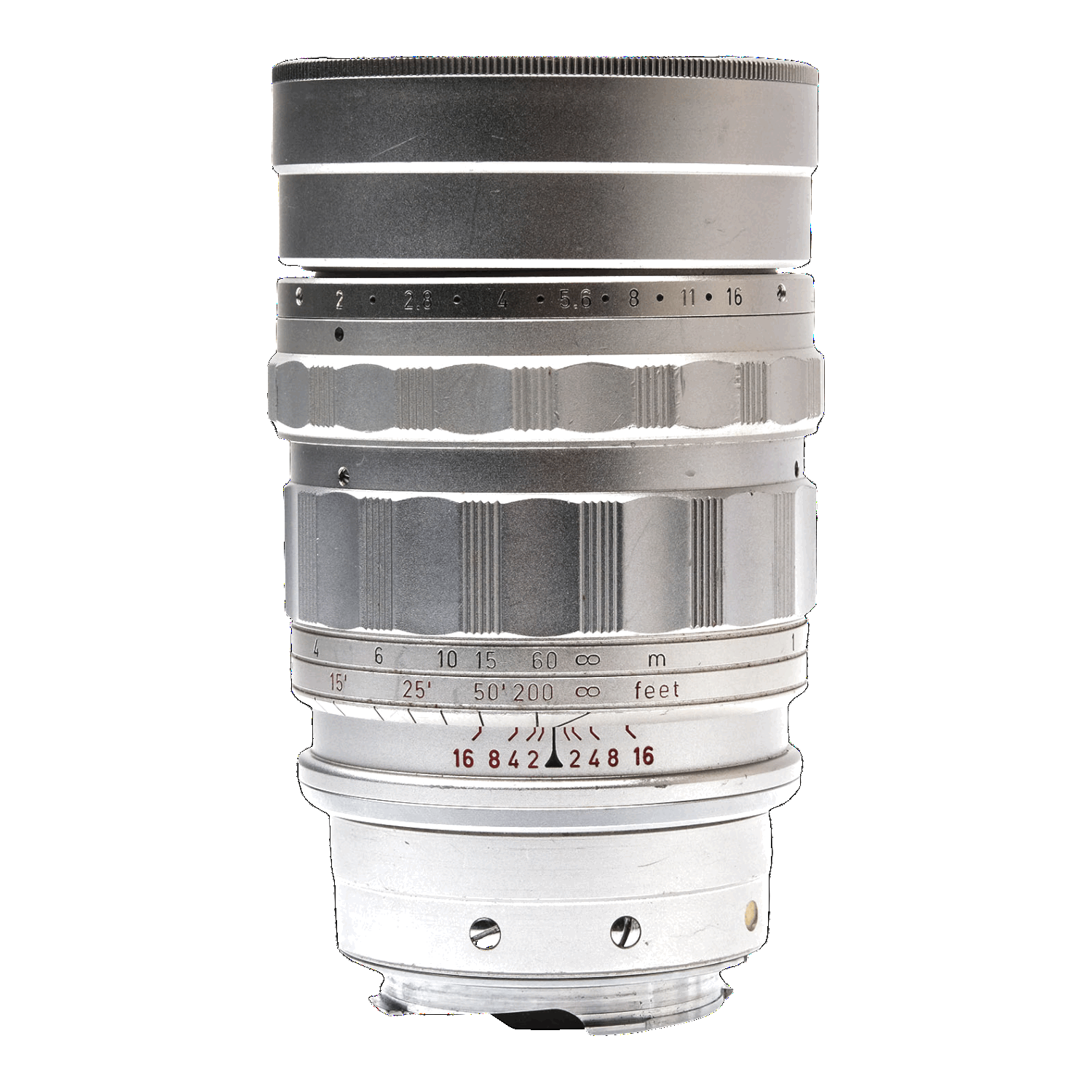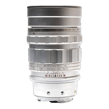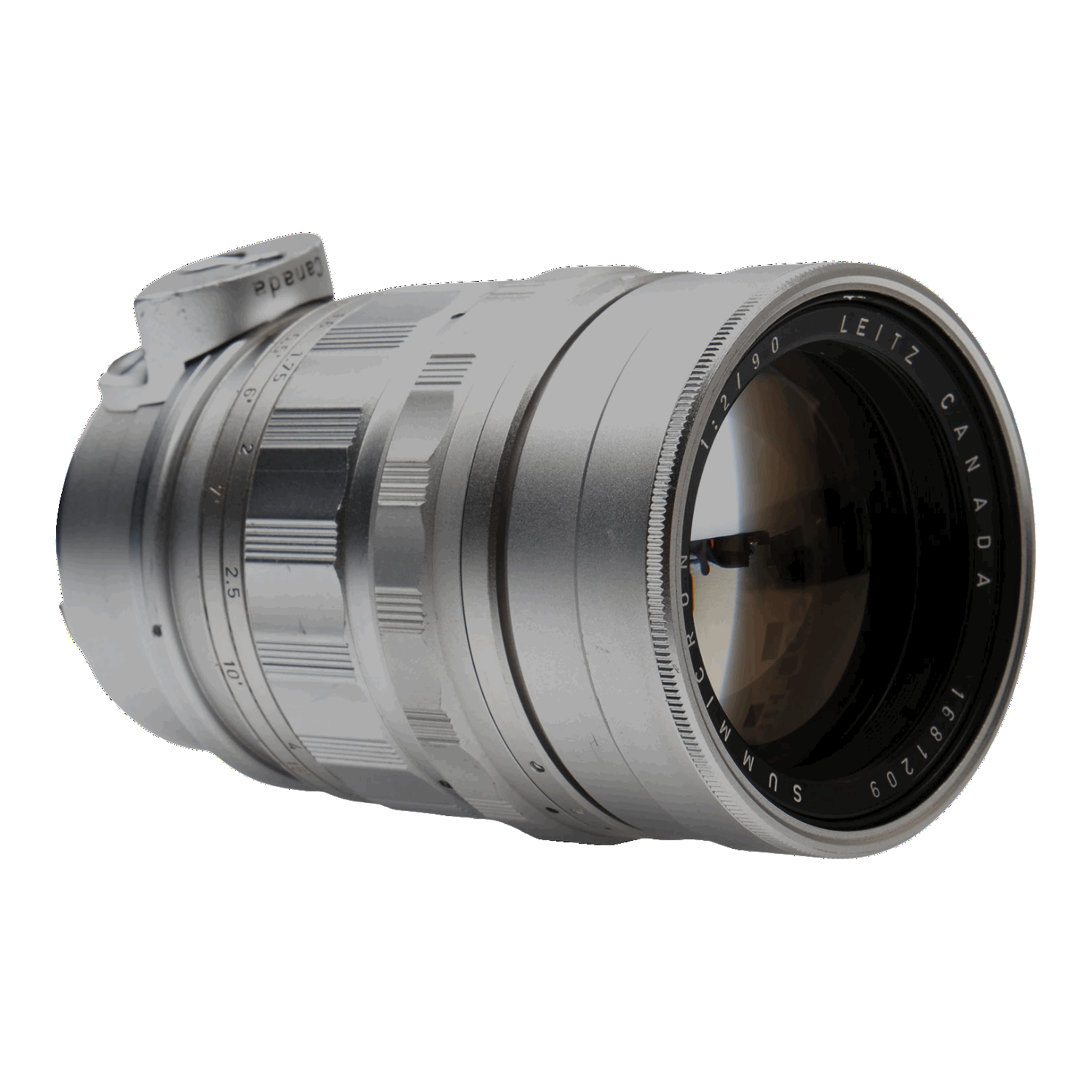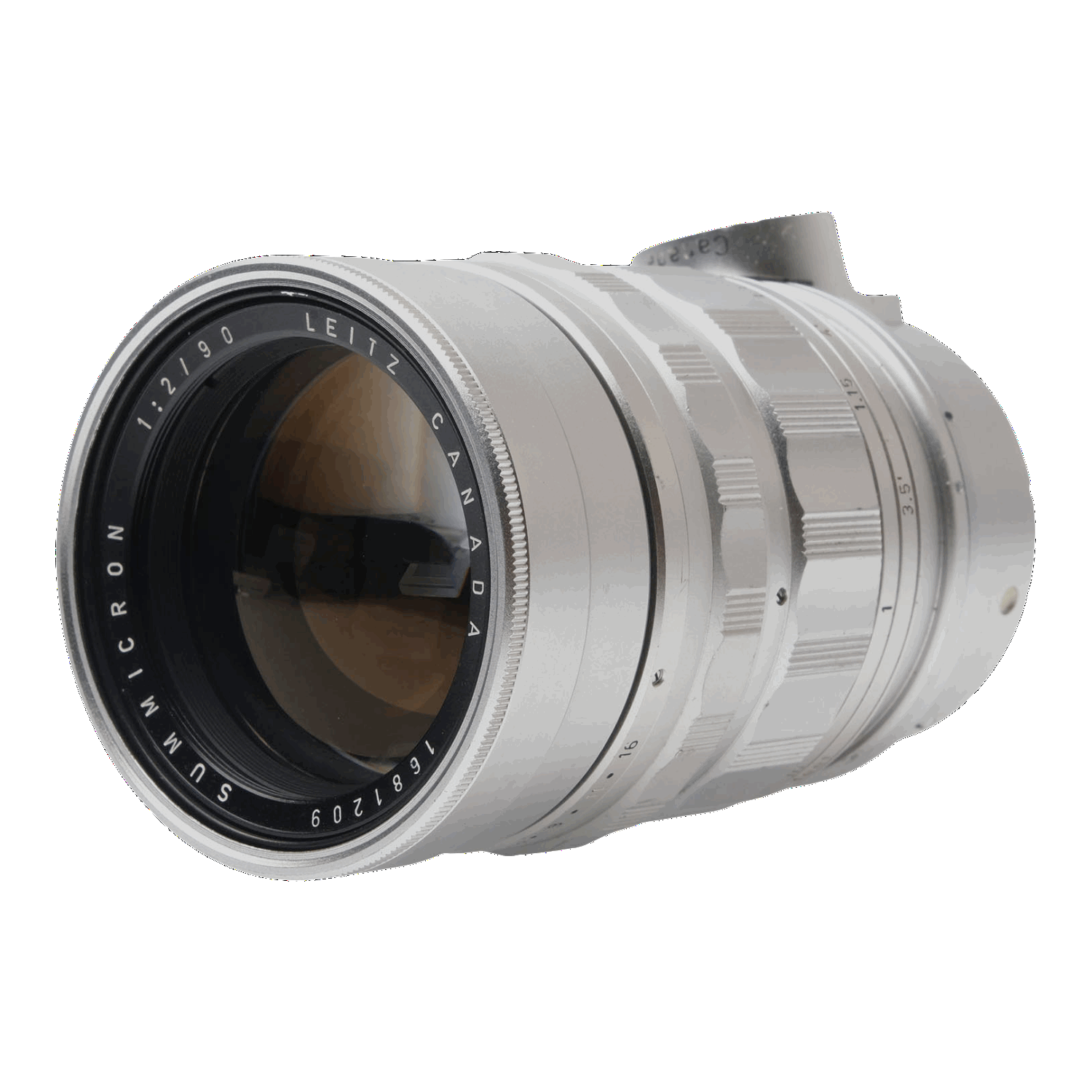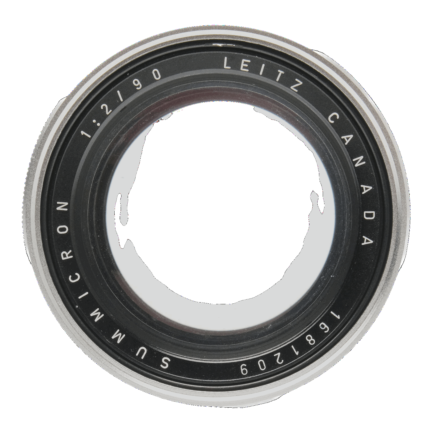 This Leica 90mm f2 Summicron M Lens (Silver), #1681209, is in good condition with some handling wear. I rate it cosmetically an (8+). The aperture ring is smooth, the aperture functions properly, and the glass is clean and clear with no haze, marks, or fungus. There are a few faint specks of dust inside, but they do not affect image quality. The focusing helicoid is a bit stiff and makes some noise. This lens includes front & rear caps. Please refer to the photos for details.