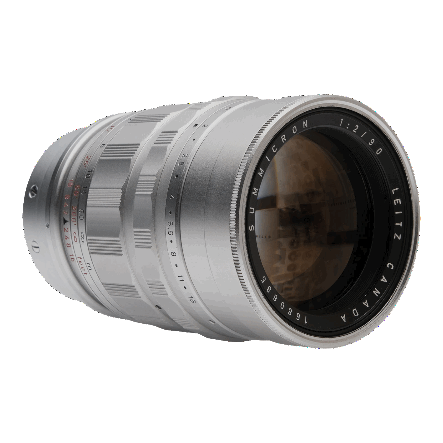 This Leica 90mm f2 Summicron Lens (Silver), #1680885, is in great condition with minor handling wear. I rate it cosmetically a (9). The aperture ring is smooth, the aperture functions properly, and the glass is clean and clear with no haze, marks, or fungus. There are a few faint specks of dust inside, but they do not affect image quality. The focusing helicoid is a bit stiff. This lens is for Leica screw mount/thread mount (LTM) and other E39 bodies. It includes front & rear caps and the original box. Please refer to the photos for details.