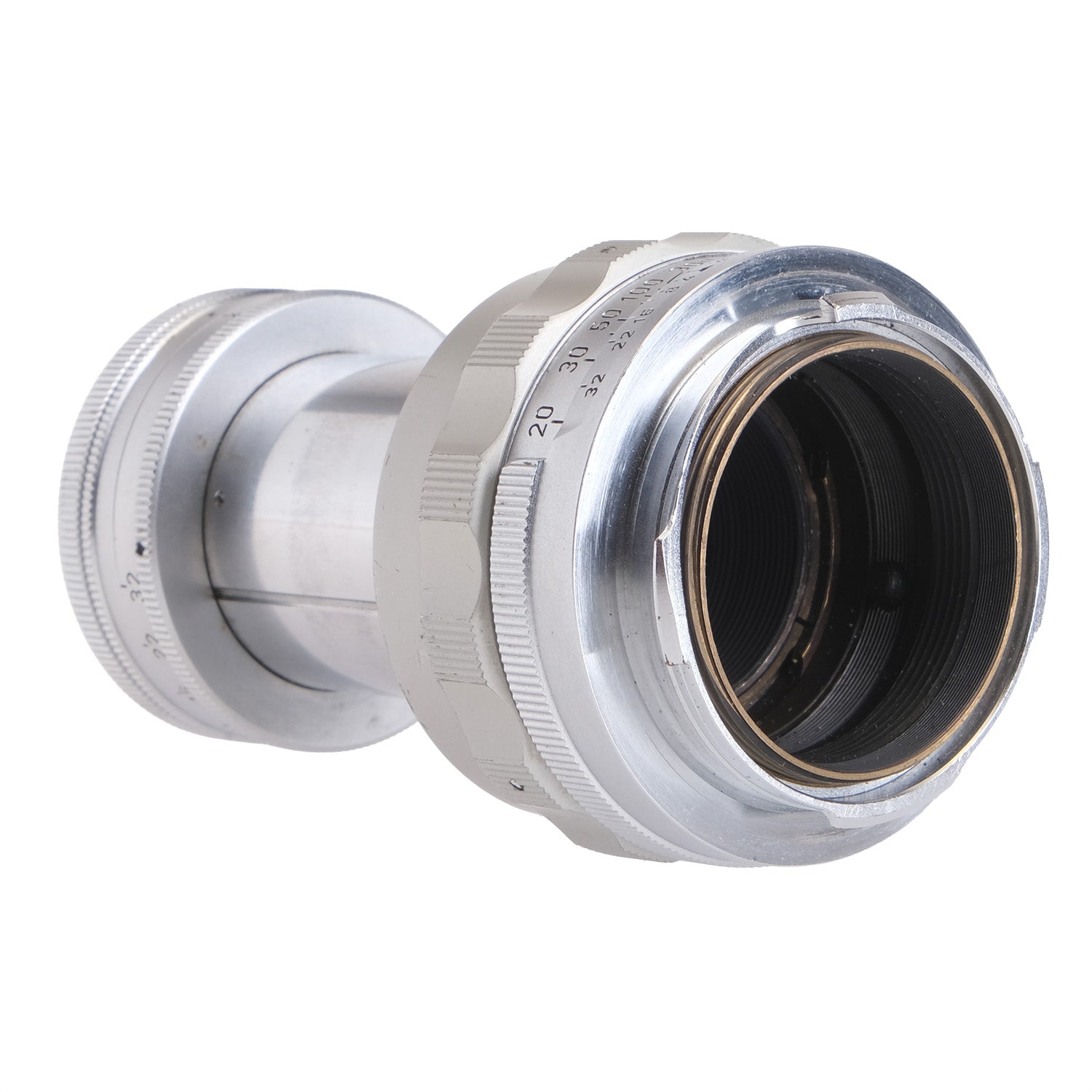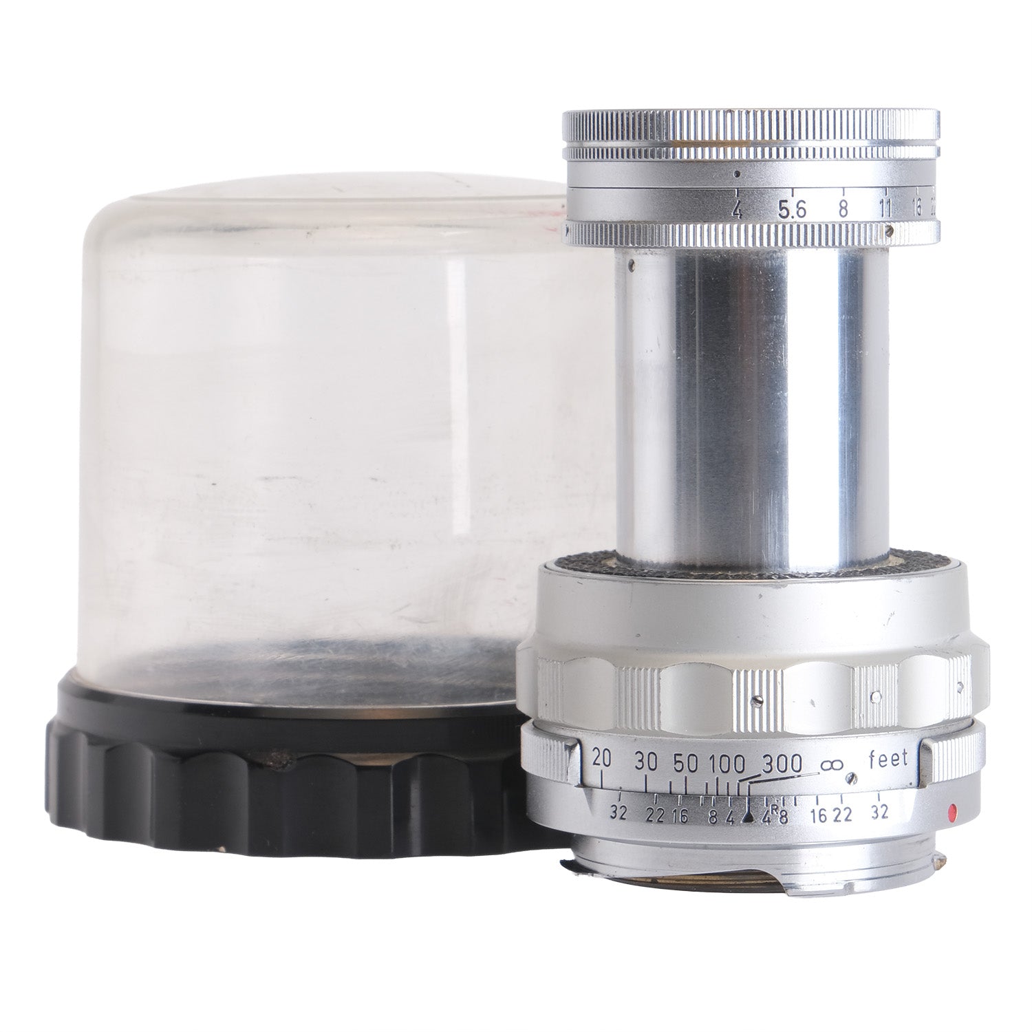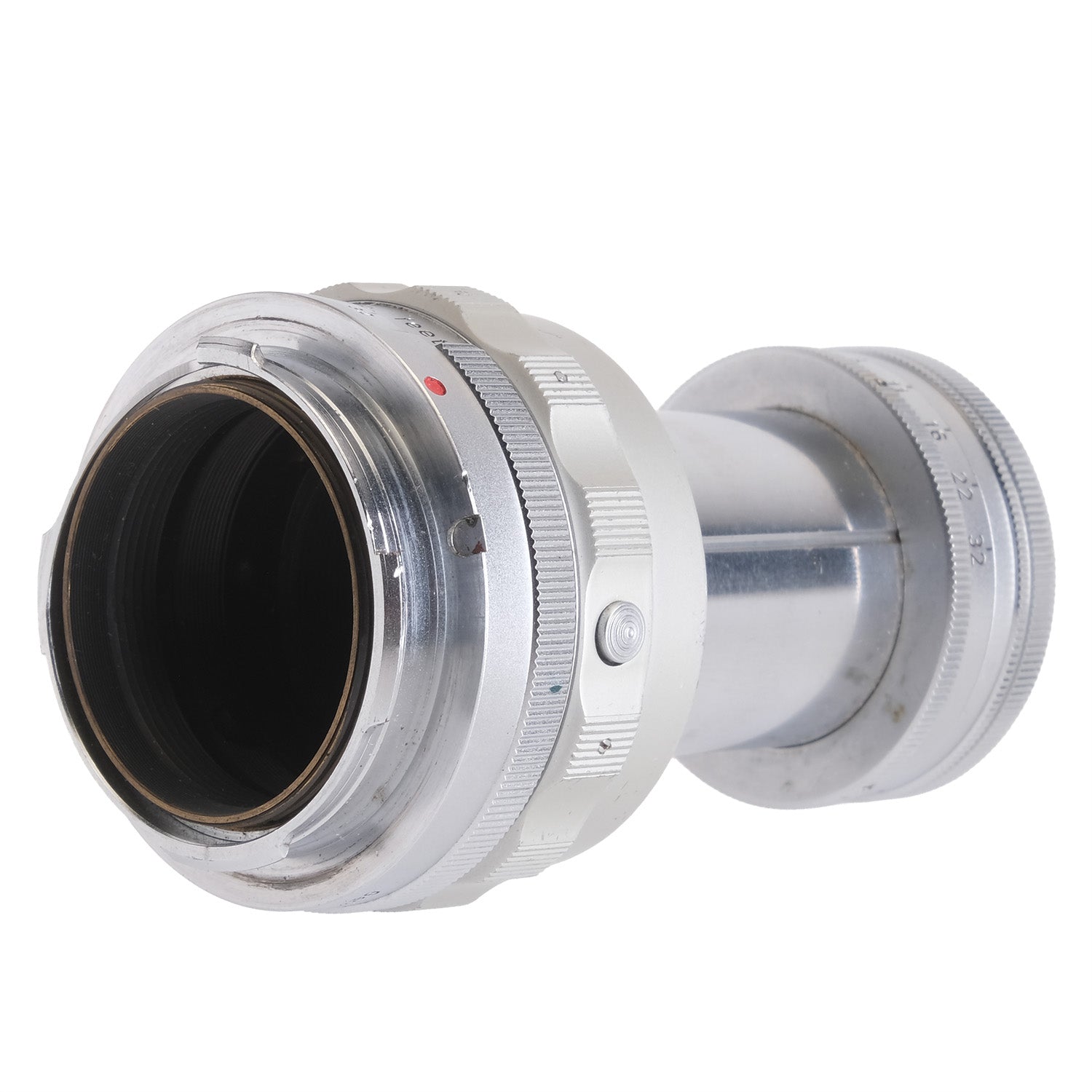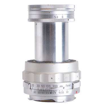 This Leica 9cm f4 Elmar Collapsible Lens #1188191, is in very good cosmetic condition with minor signs of handling wear found throughout, please see photos for visual reference. Cosmetically, this lens has been rated at a (9) condition. This lens is in proper working order; the aperture and focus turn smoothly, and the glass is clean with no signs of fungus or haze present. This lens comes with a lens bubble only and is ready for use!