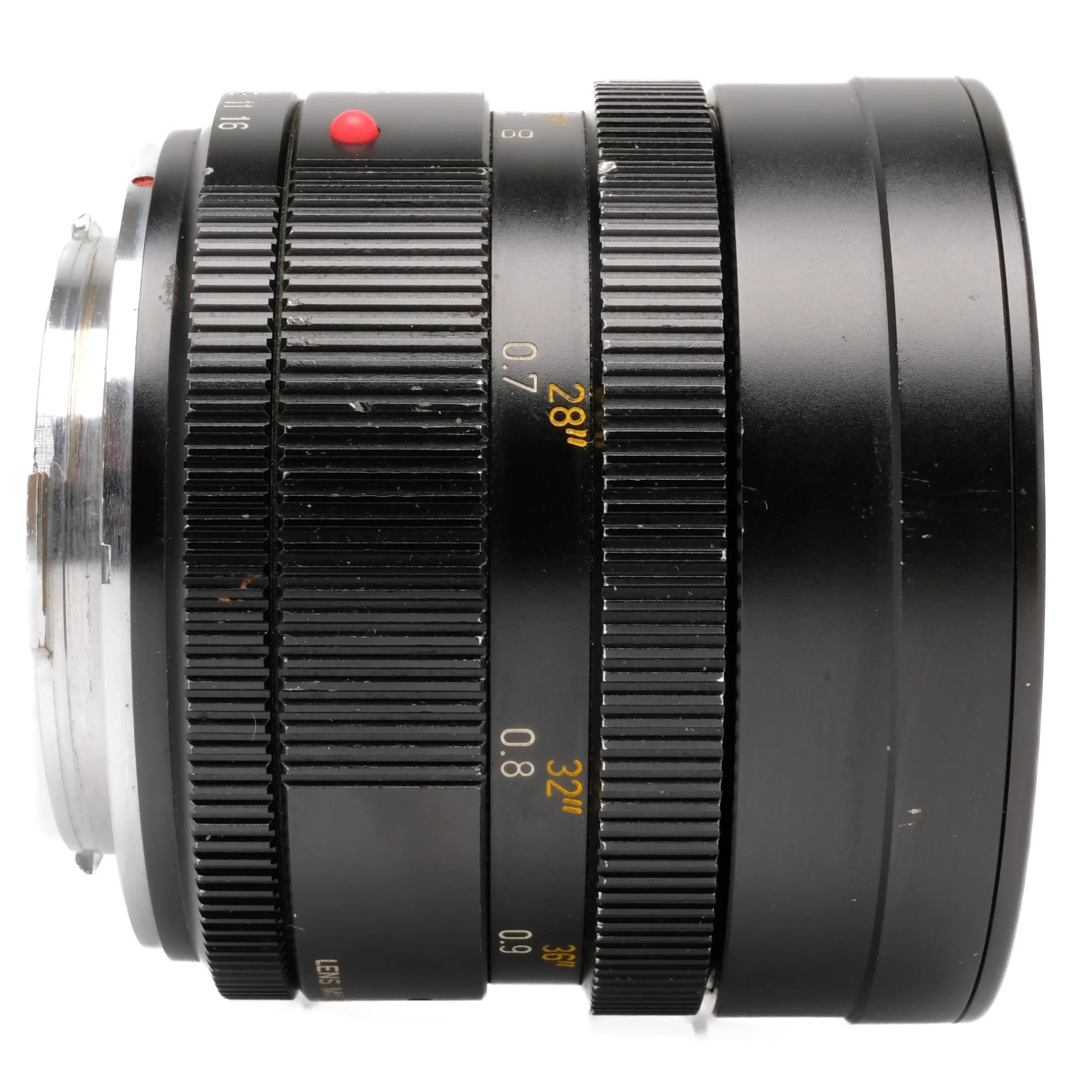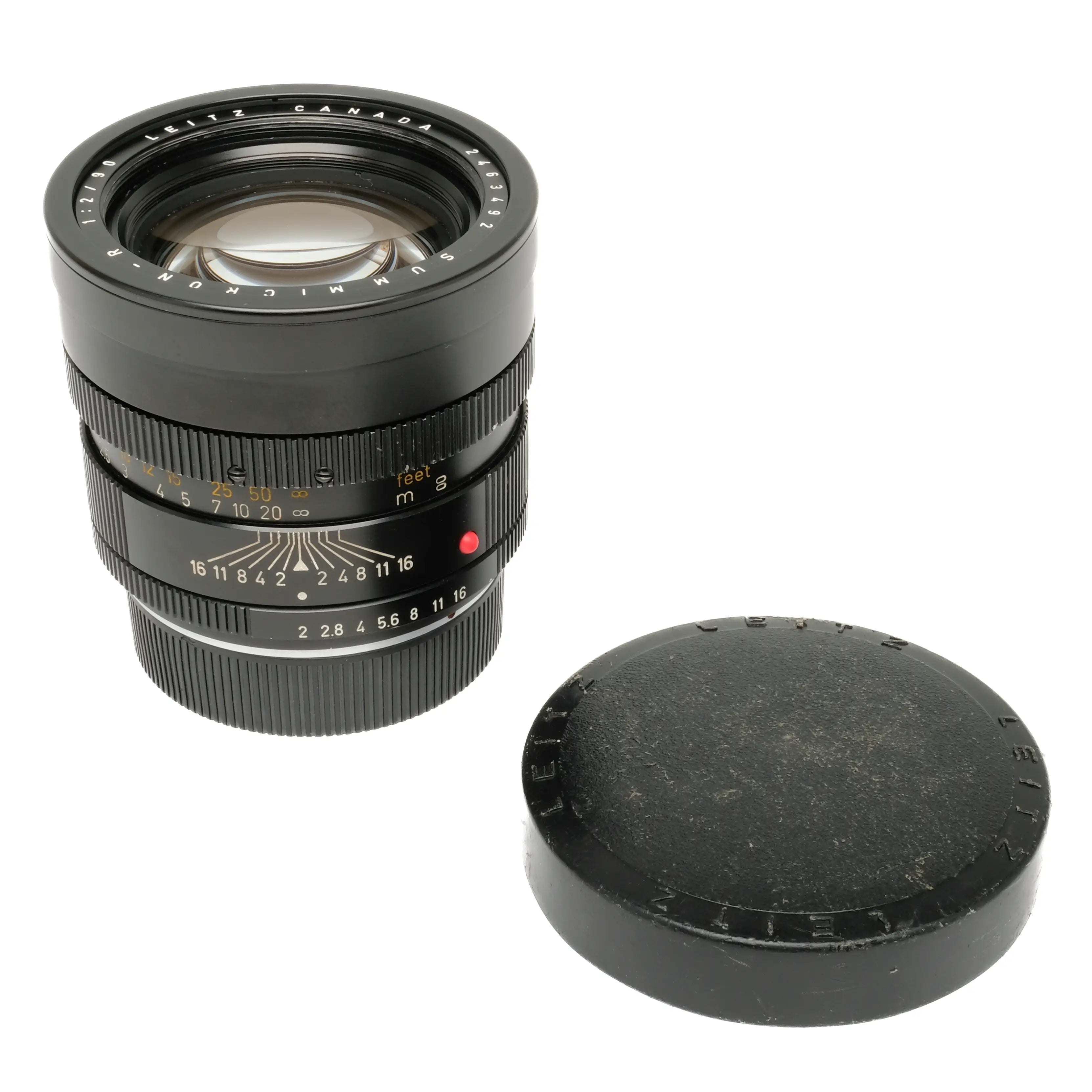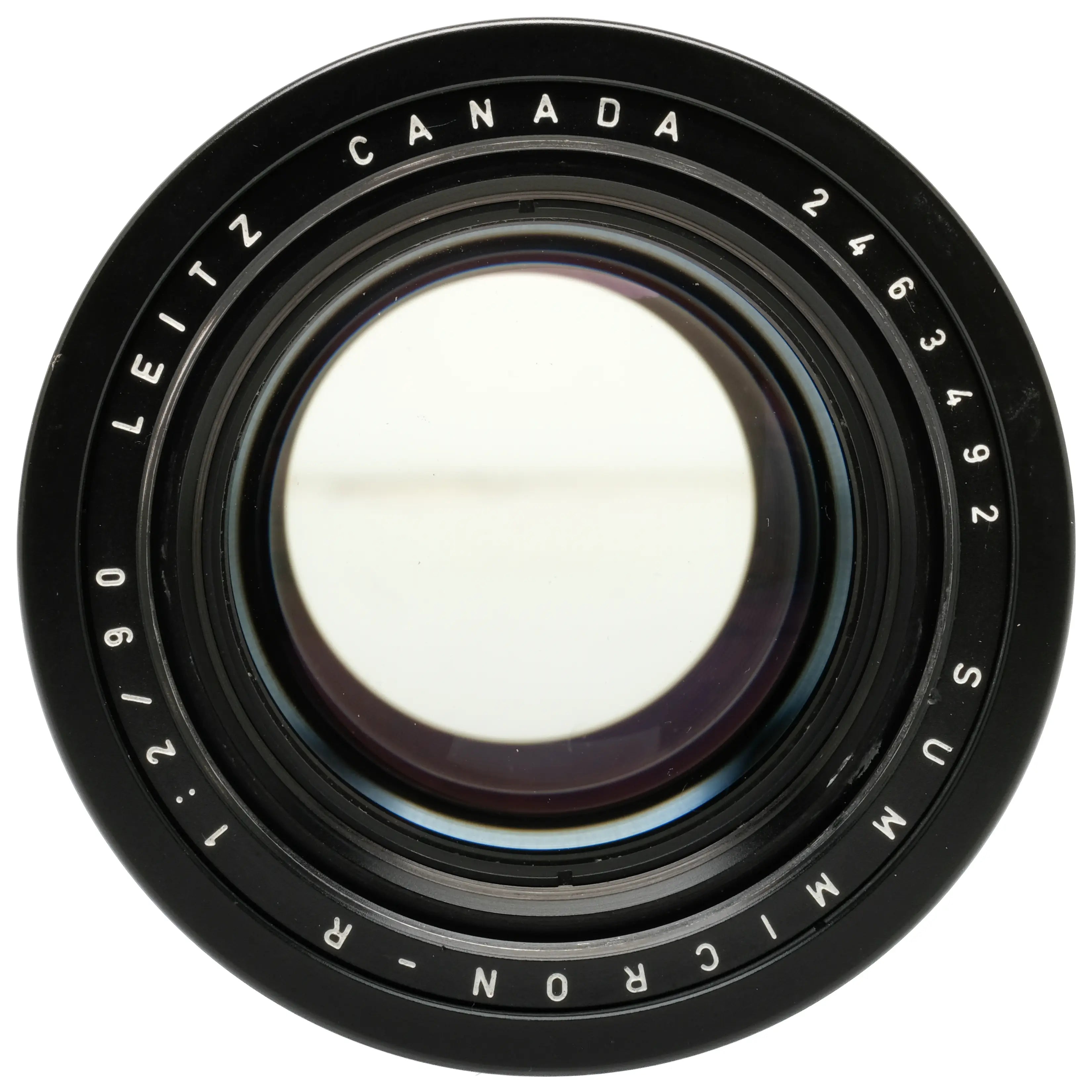 This Leica 90mm f2 Summicron-R #2463492 is in good cosmetic condition with minor handling and edge wear found throughout, please see photos for visual reference. Cosmetically, this lens has been rated at a (8+) condition. This lens is in proper working order; the aperture and focus are smooth, and the glass is clean and clear with no signs of fungus, haze, or marks present. This lens includes front/rear caps.
