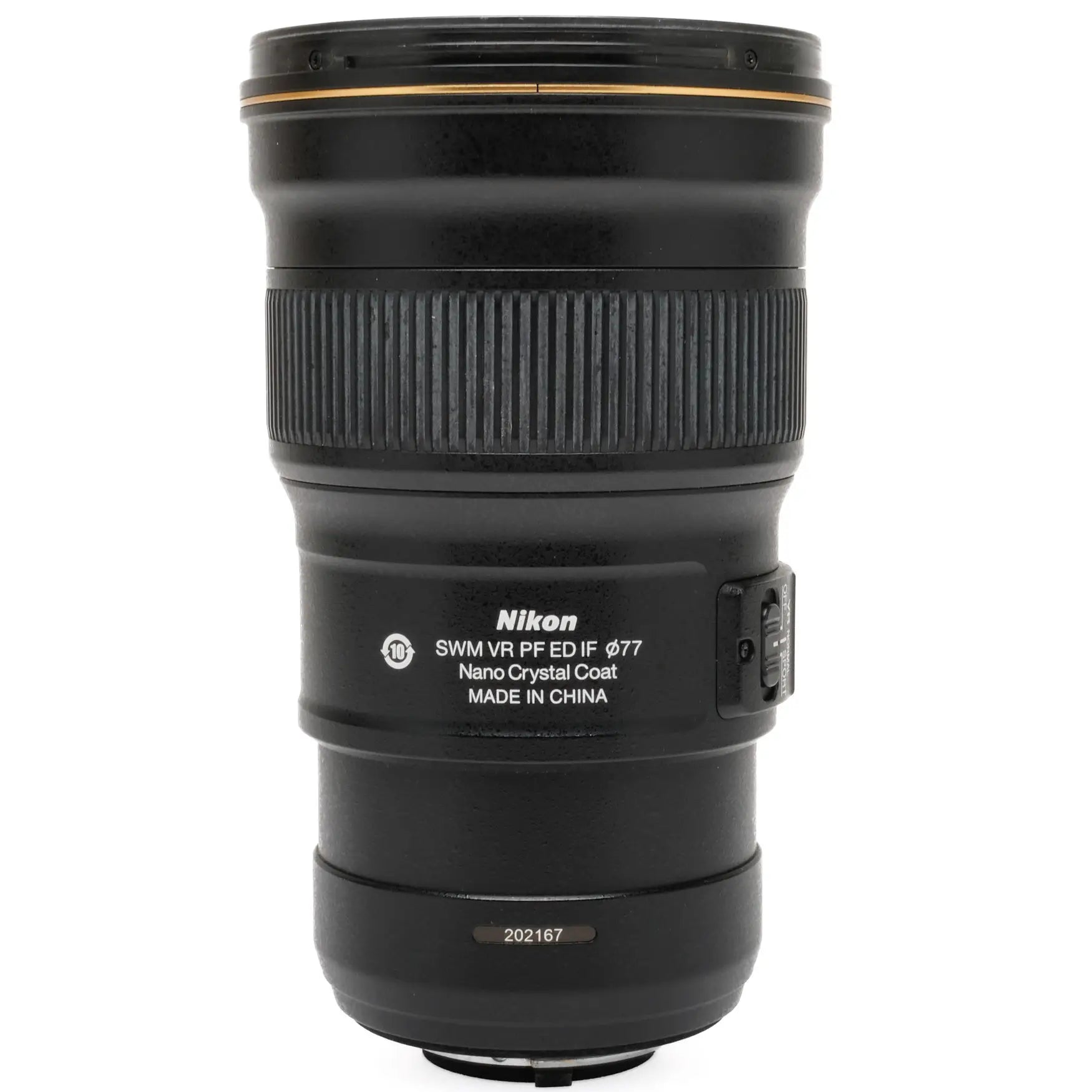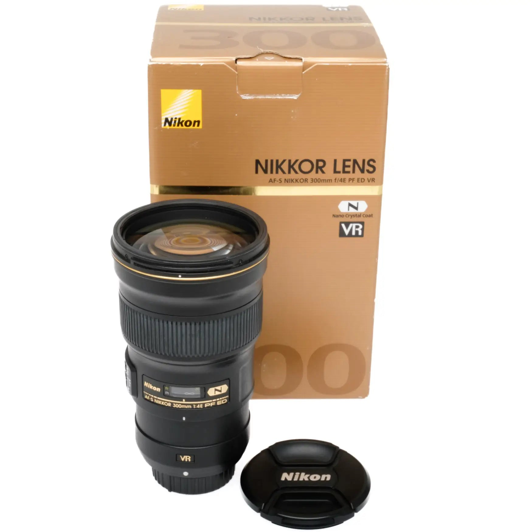 This Nikon 300mm f4 E PF ED, #202167 is in great condition with minor handling wear. I rate it cosmetically a (9+). The focus ring is smooth, and the aperture functions properly. The glass is clean and clear with no haze, marks, or fungus. This lens includes front and rear caps and original box. Please refer to the photos for details.