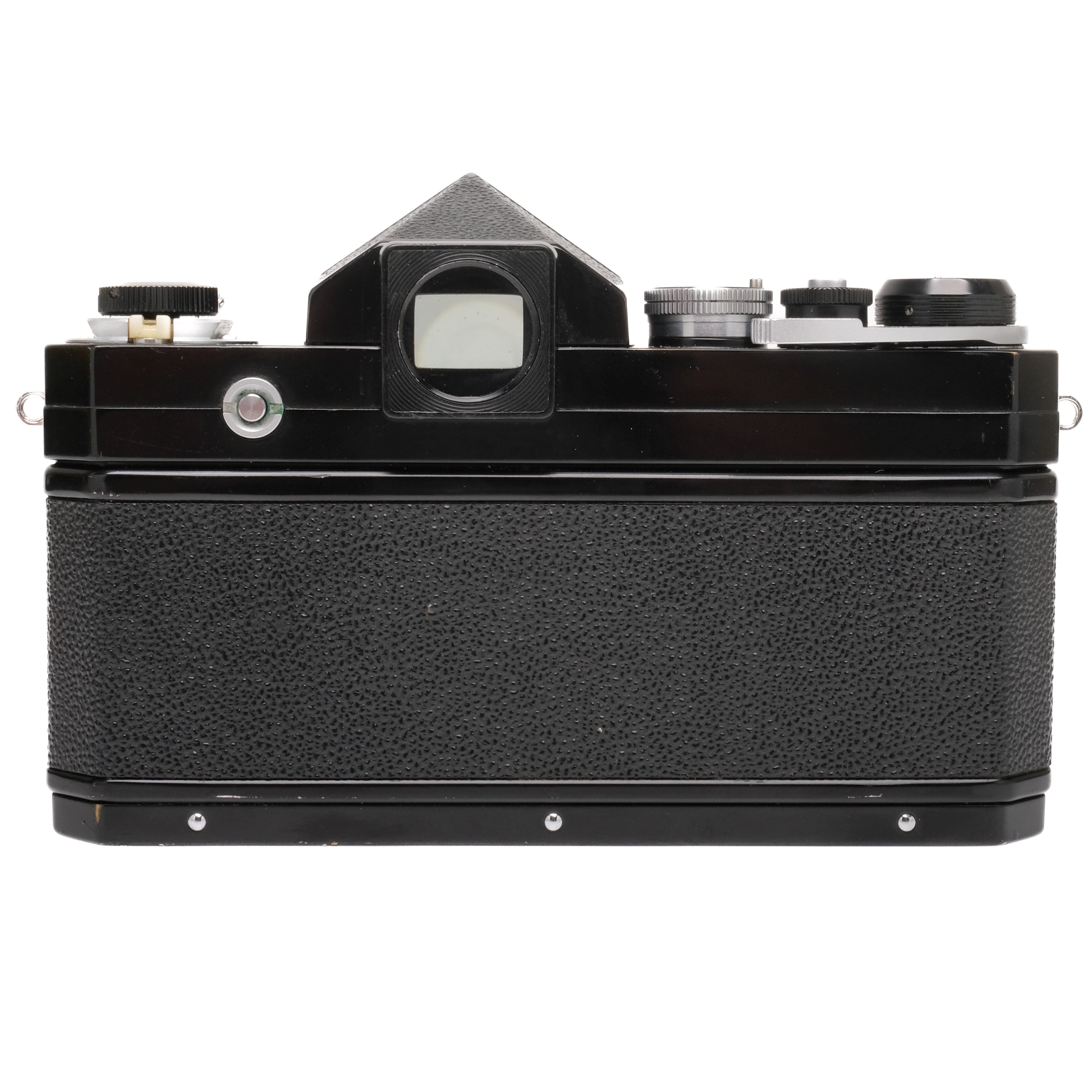 This Nikon F is in great cosmetic condition with minor handling wear found throughout, please see photos for visual reference. Cosmetically, this camera has been rated at a (9) condition. The camera is in proper working order; film advances and rewinds properly, and the shutter is accurate at all speeds. The lens glass is clean with no signs of fungus, haze, or marks present. This camera includes a lens cap. Please note, there is dust in the viewfinder and in the lens.
