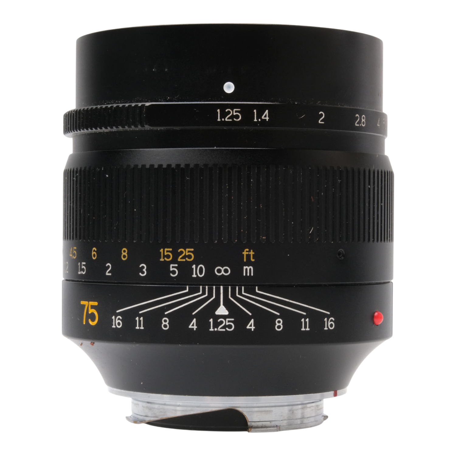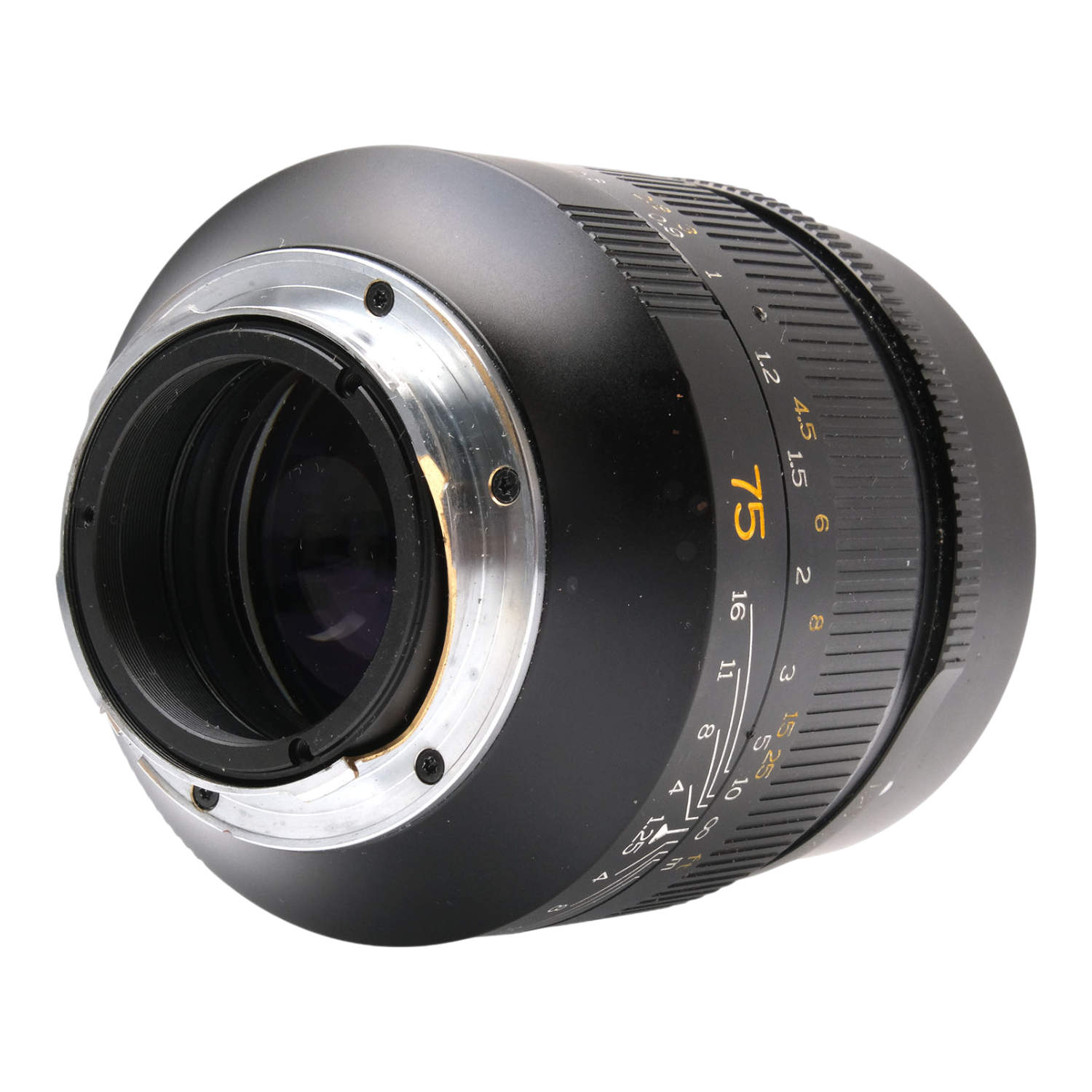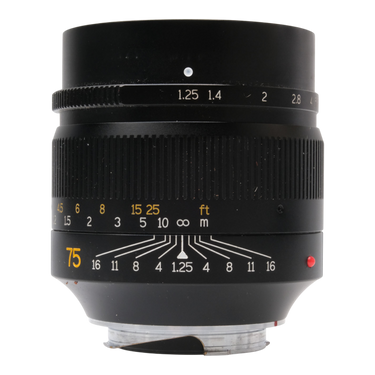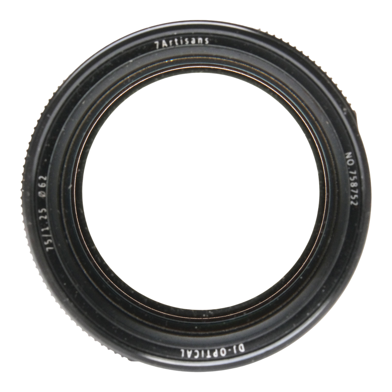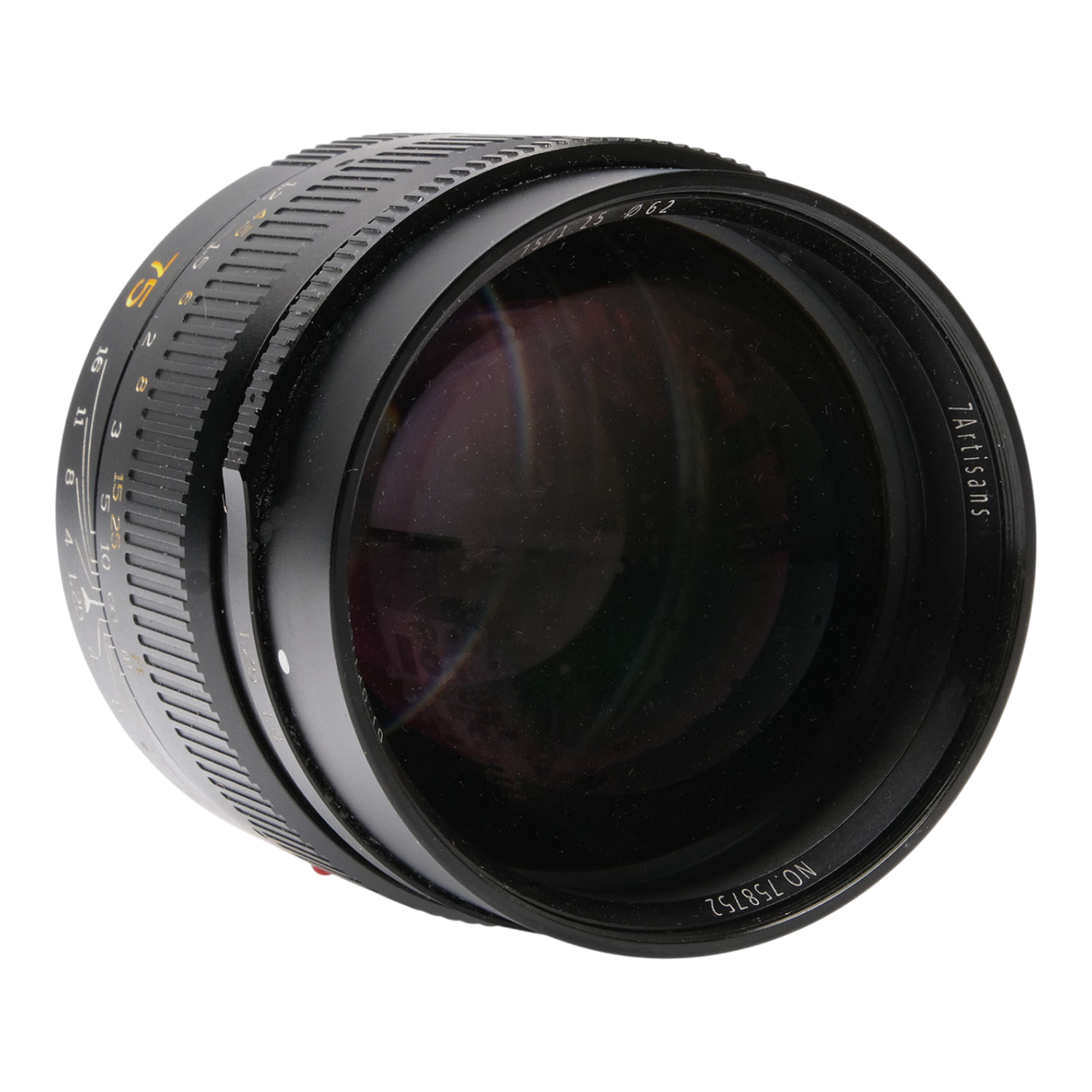 This 7Artisans 75mm f1.25 DJ-Optical Lens for Leica M, #758752, is in great condition with minor handling wear. I rate it cosmetically a (9). The focus and aperture rings are smooth, the aperture functions properly, and the glass is clean and clear with no haze, marks, or fungus. There are a few faint specks of dust inside, but they do not affect image quality. This lens includes front & rear caps. Please refer to the photos for details.