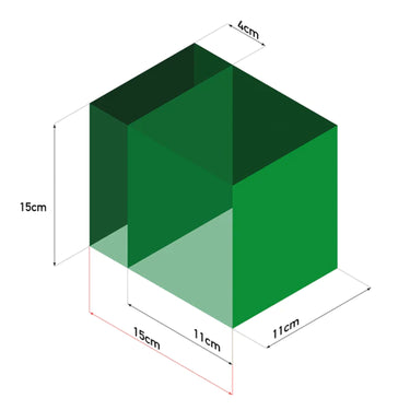 • The first is 11cm (4⅜") x 11cm (4⅜"). The height is 15cm (5⅞").​