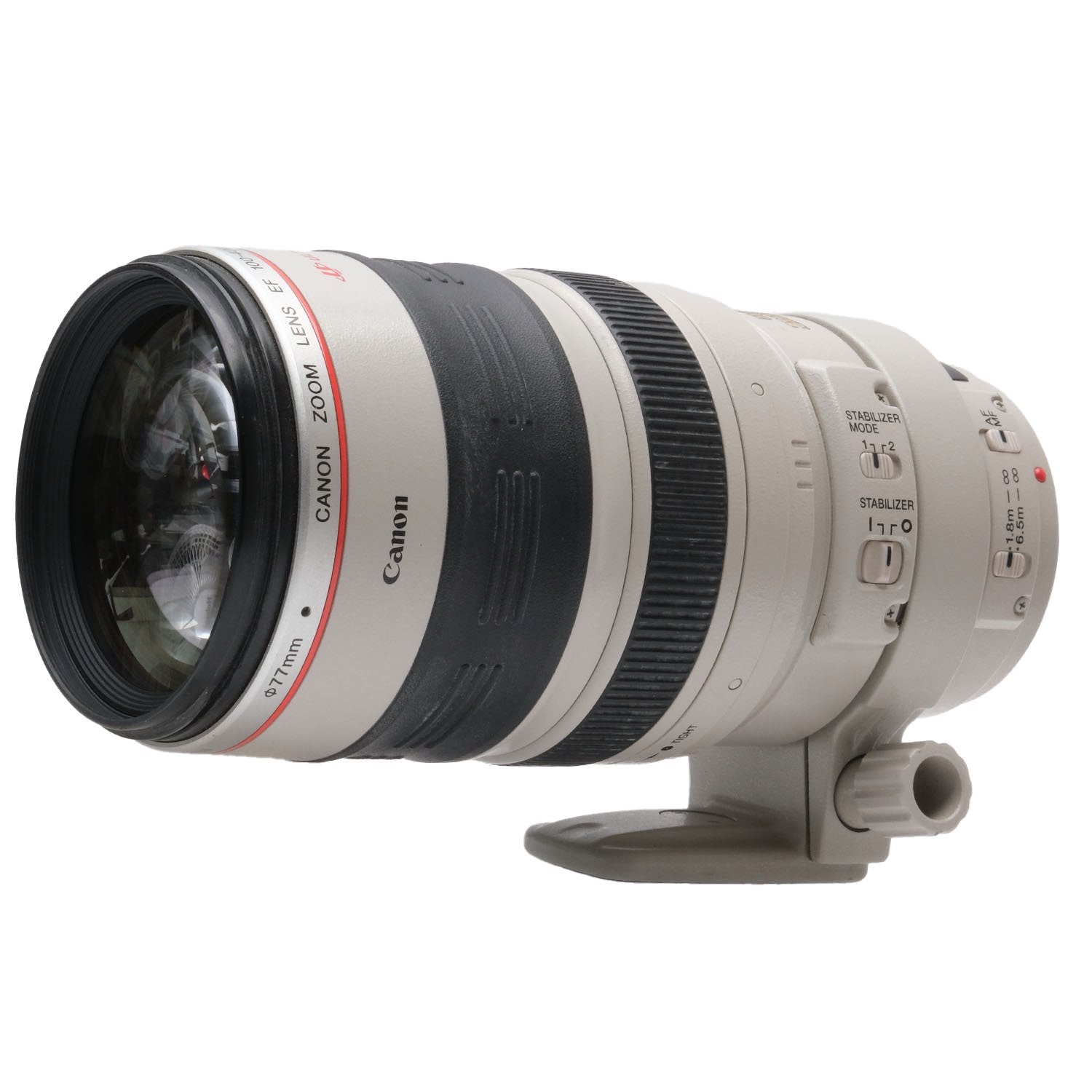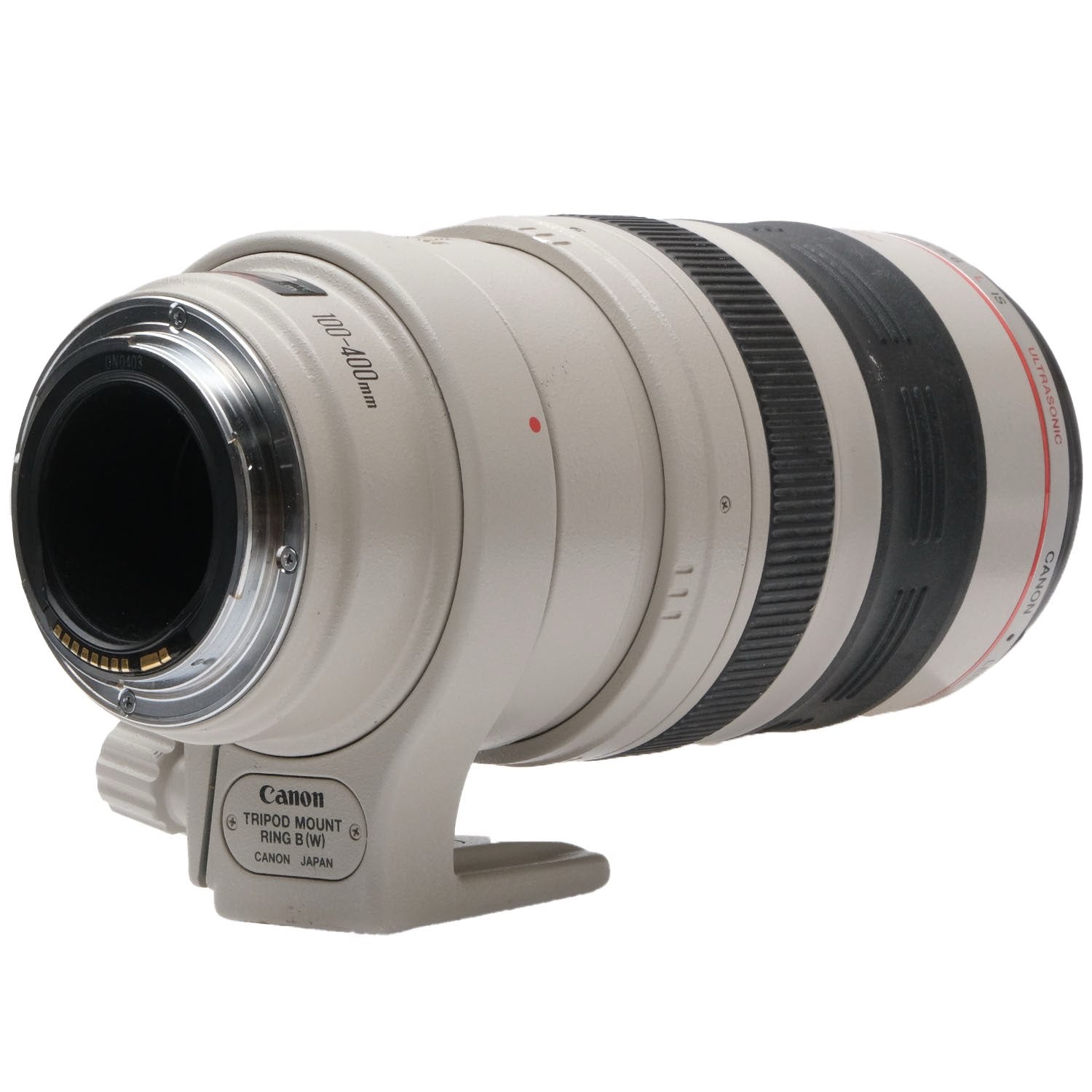 This Canon EF 100-400mm f4.5-5.6 L IS USM Zoom Lens, #207858, is in great condition with minor handling wear. I rate it cosmetically a (9). The zoom is smooth, but the focus ring is a bit stiff. The autofocus and aperture function properly, and the glass is clean and clear with no haze, marks, or fungus. There are a few faint specks of dust inside, but they do not affect image quality. This lens includes a Canon lens hood, tripod mounting ring, and front & rear caps. The lens hood a bit loose. Please refer to the photos for details.
