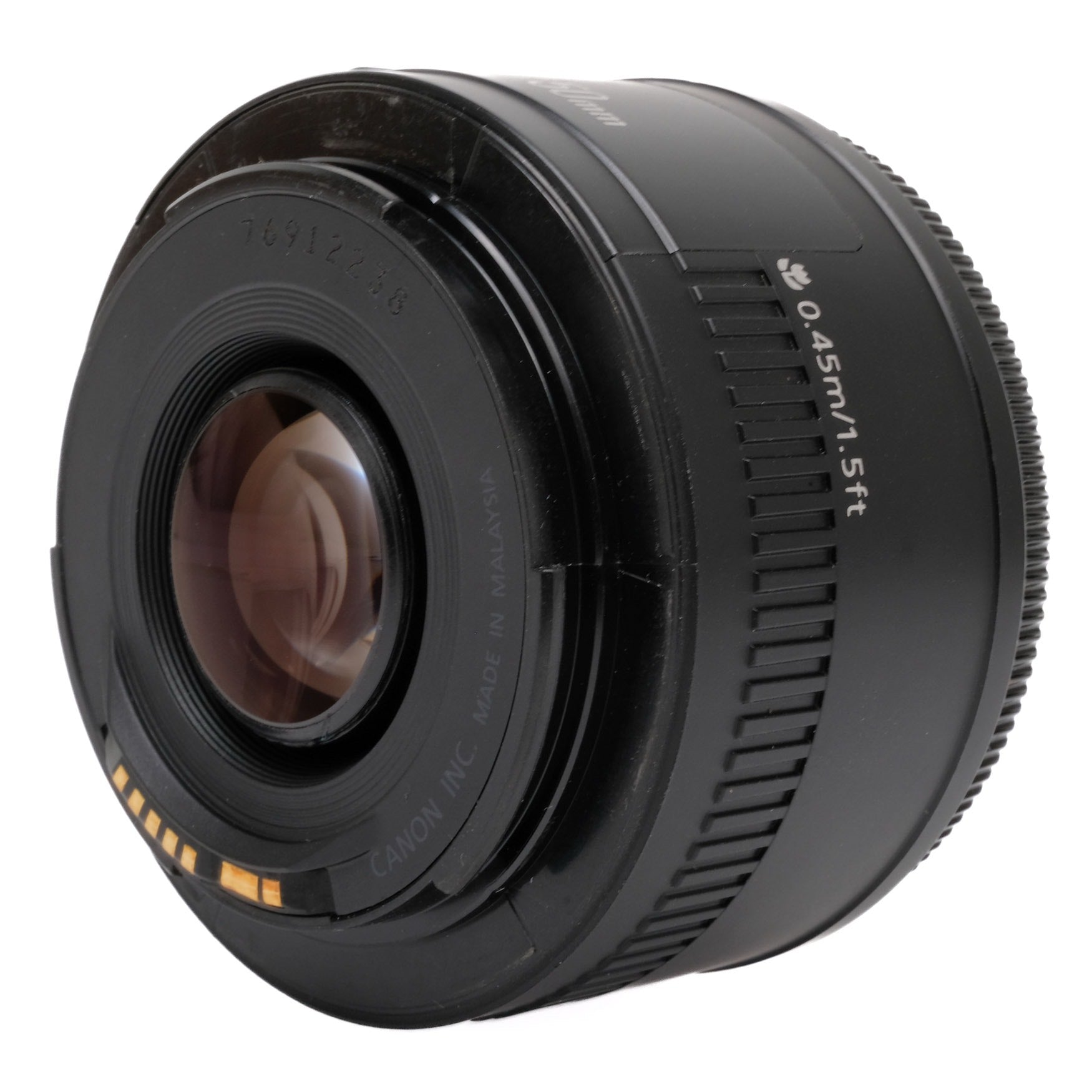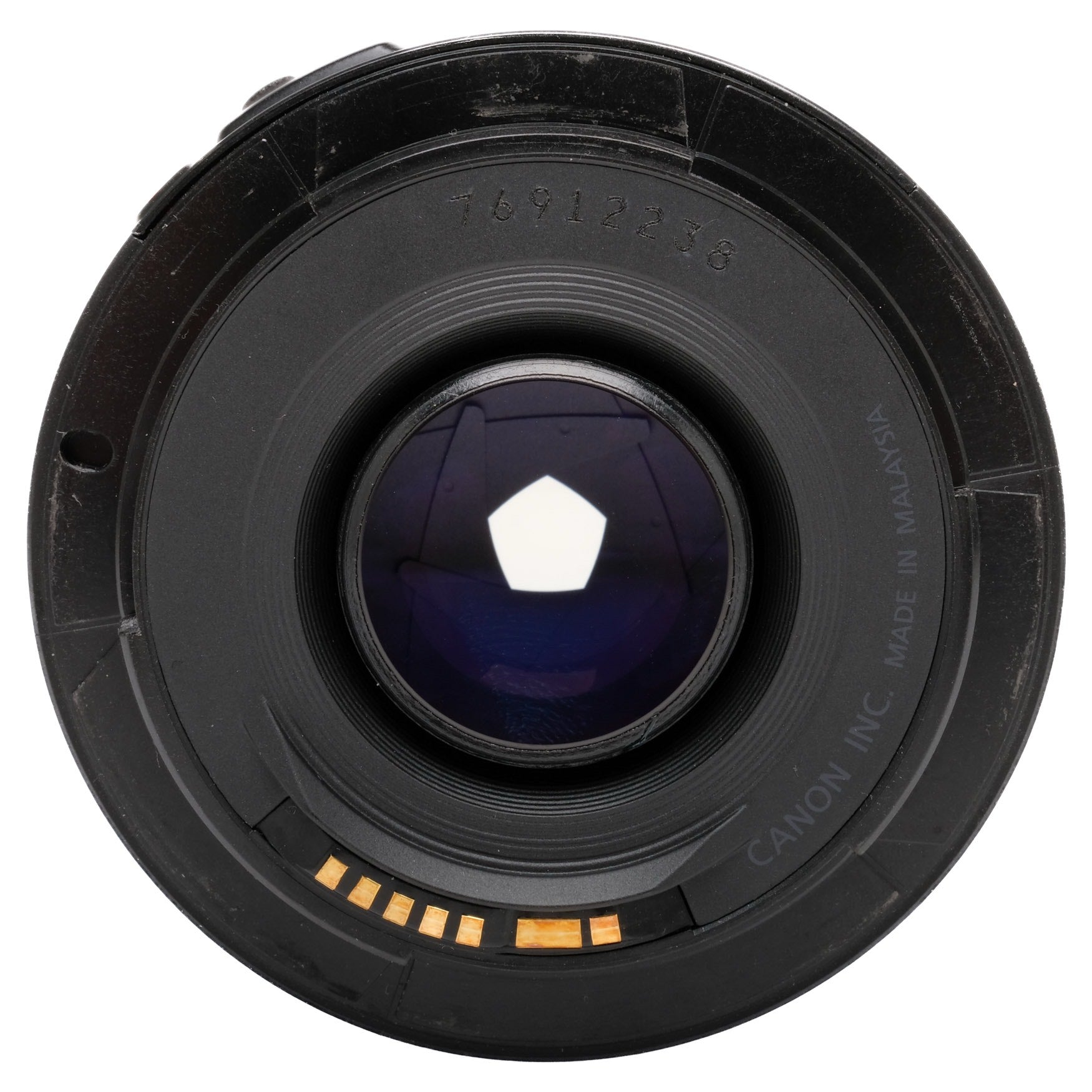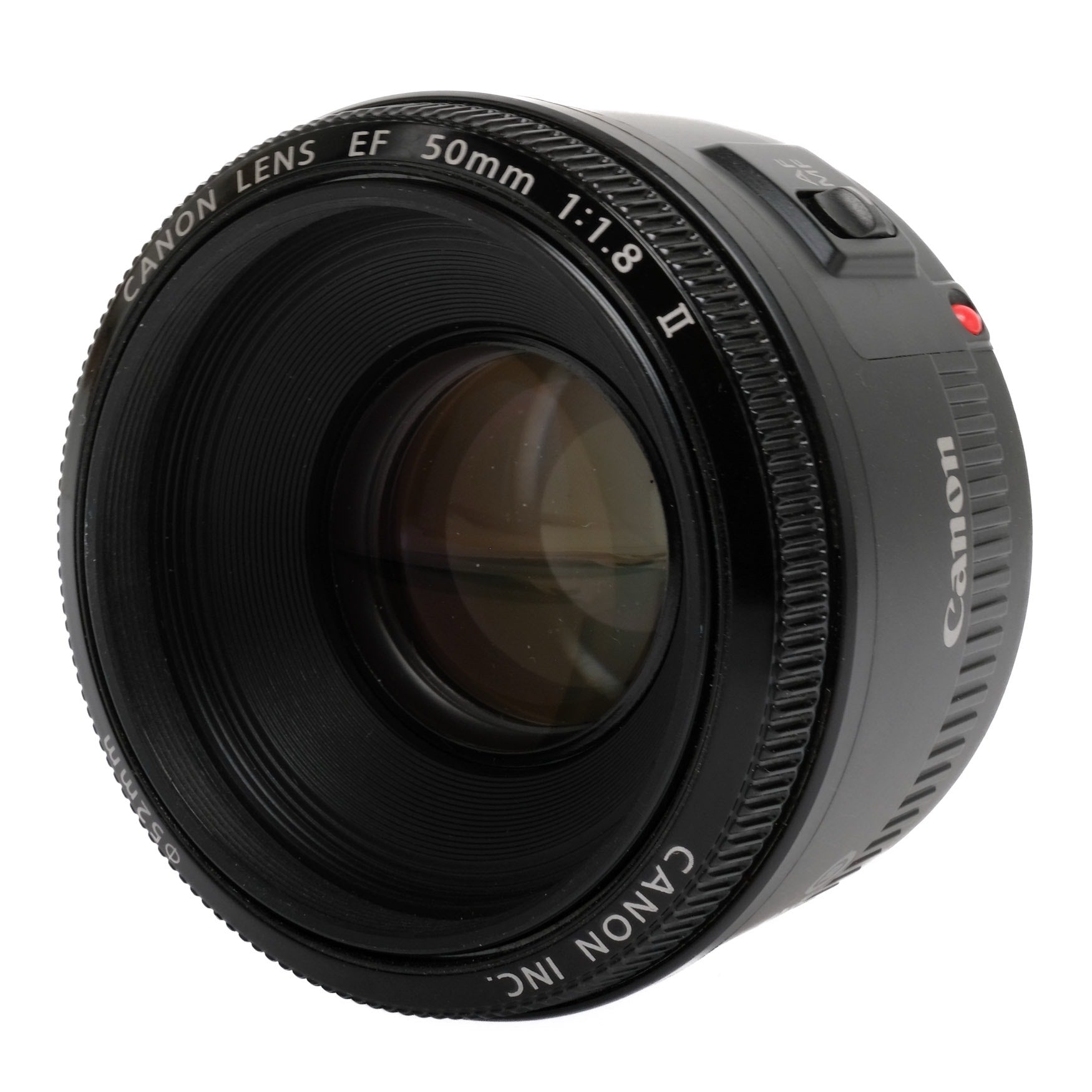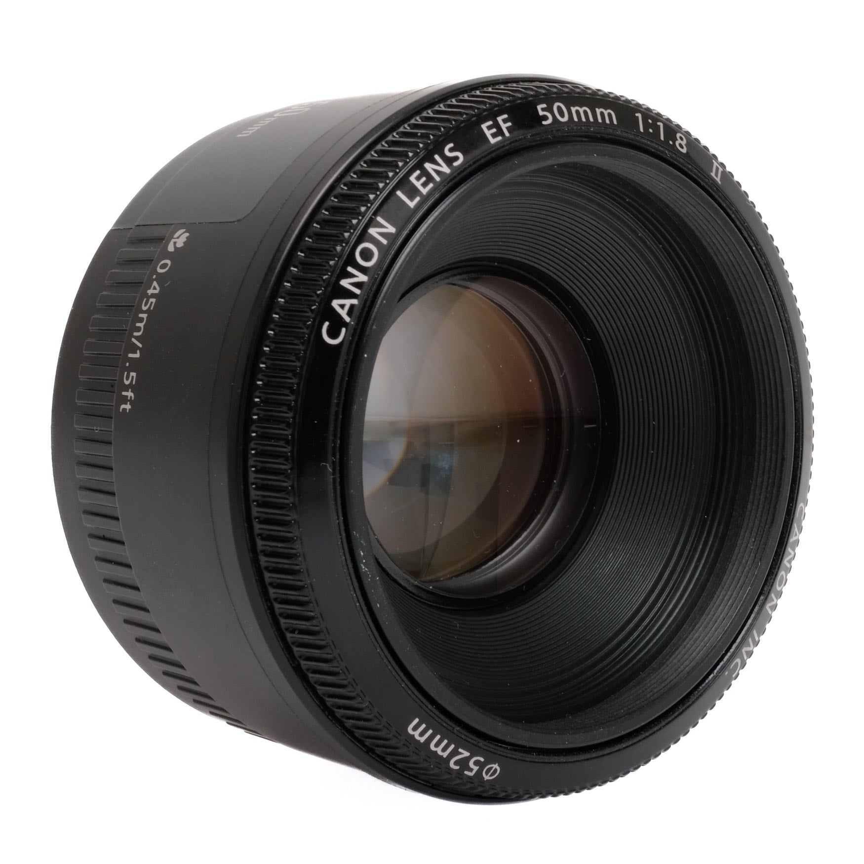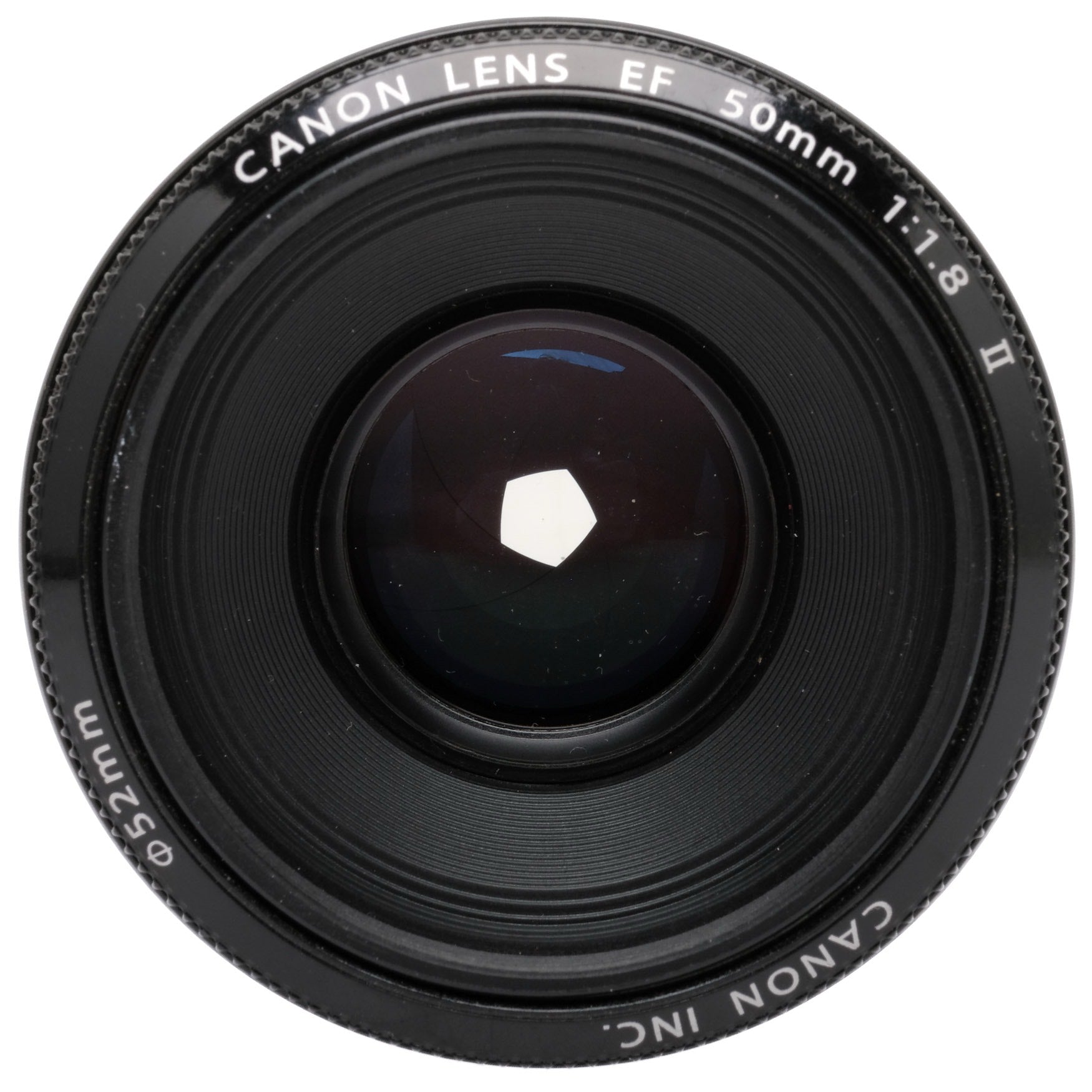 This Canon 50mm f1.8 II Lens, #76912238, is in nice cosmetic condition with minor handling wear. I rate it cosmetically at (9) condition. The focus is smooth and the aperture works well. The glass is clean and clear with no haze, marks or fungus. Both correct caps are included.