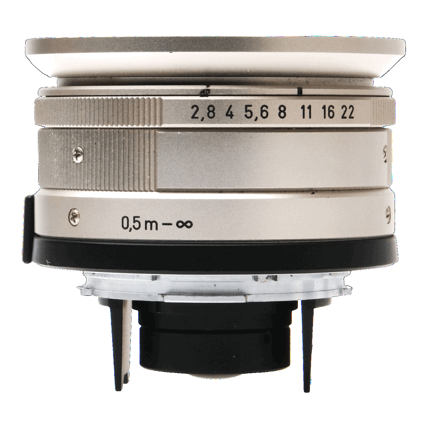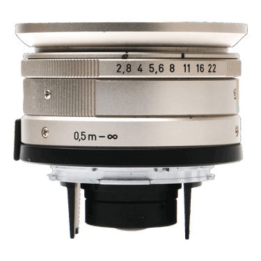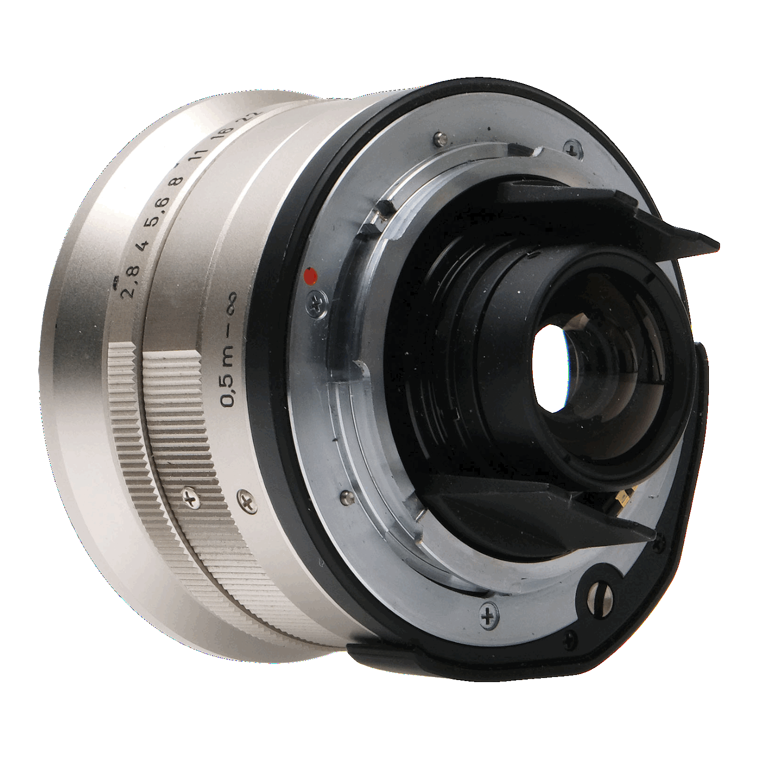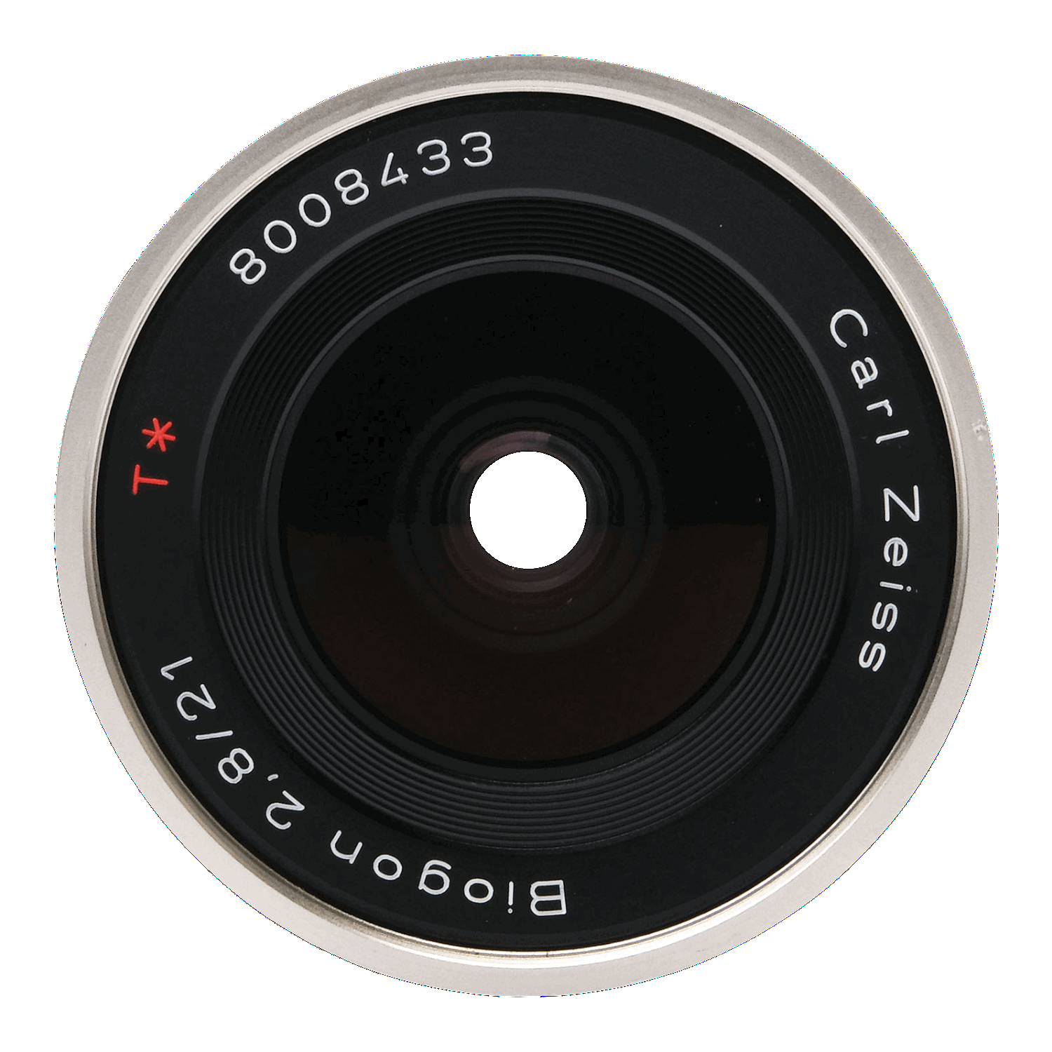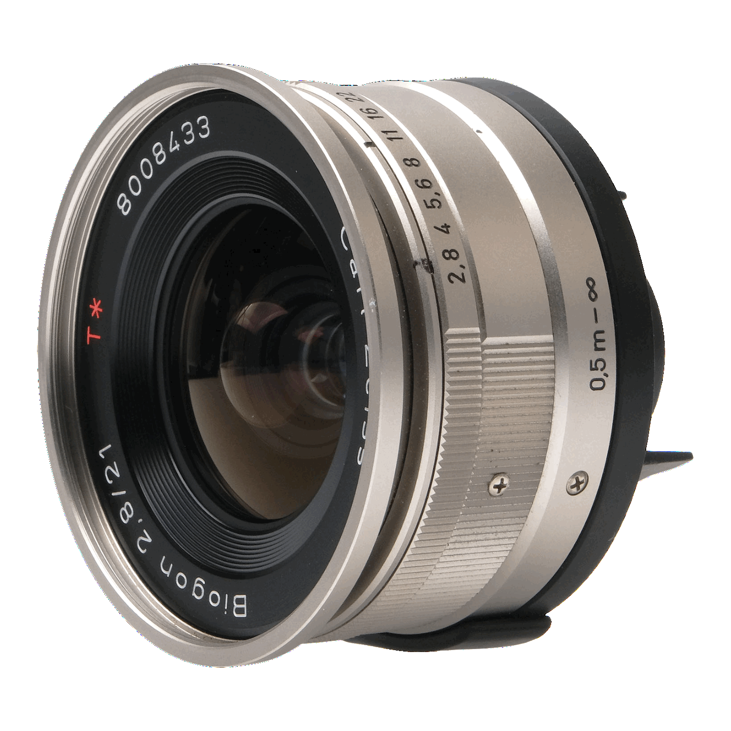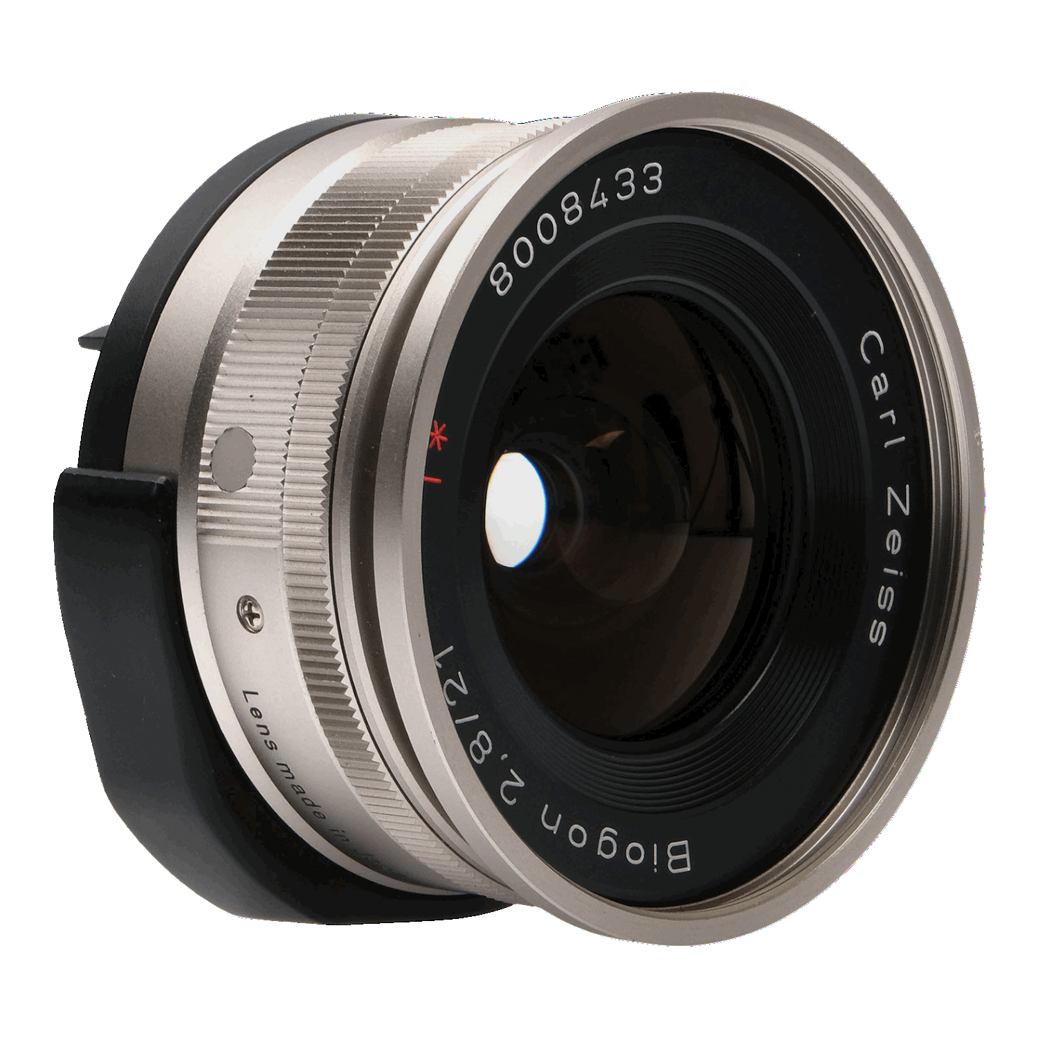 This Contax G 21mm f2.8 Biogon, #8008433, is in great cosmetic condition with minor handling and edge wear. I rate it cosmetically a (9+.) The aperture ring is smooth, and the autofocus and aperture work properly. The glass is clean and clear with no marks, haze, or fungus. There are a few faint specks of dust inside the lens, but they do not impact image quality. The included finder is in good cosmetic condition with handling and edge wear. The finder glass is clean and clear with no marks, haze, or fungus. This lens includes the original case and front & rear caps.
