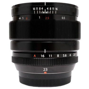 This Fujifilm XF 23mm f1.4 R Lens, #8AO1522, is in excellent condition with faint handling wear. I rate it cosmetically at (9) condition. The focus is smooth and the aperture works properly. The glass is clean and clear with no haze, marks or fungus. This lens comes with front/rear caps.