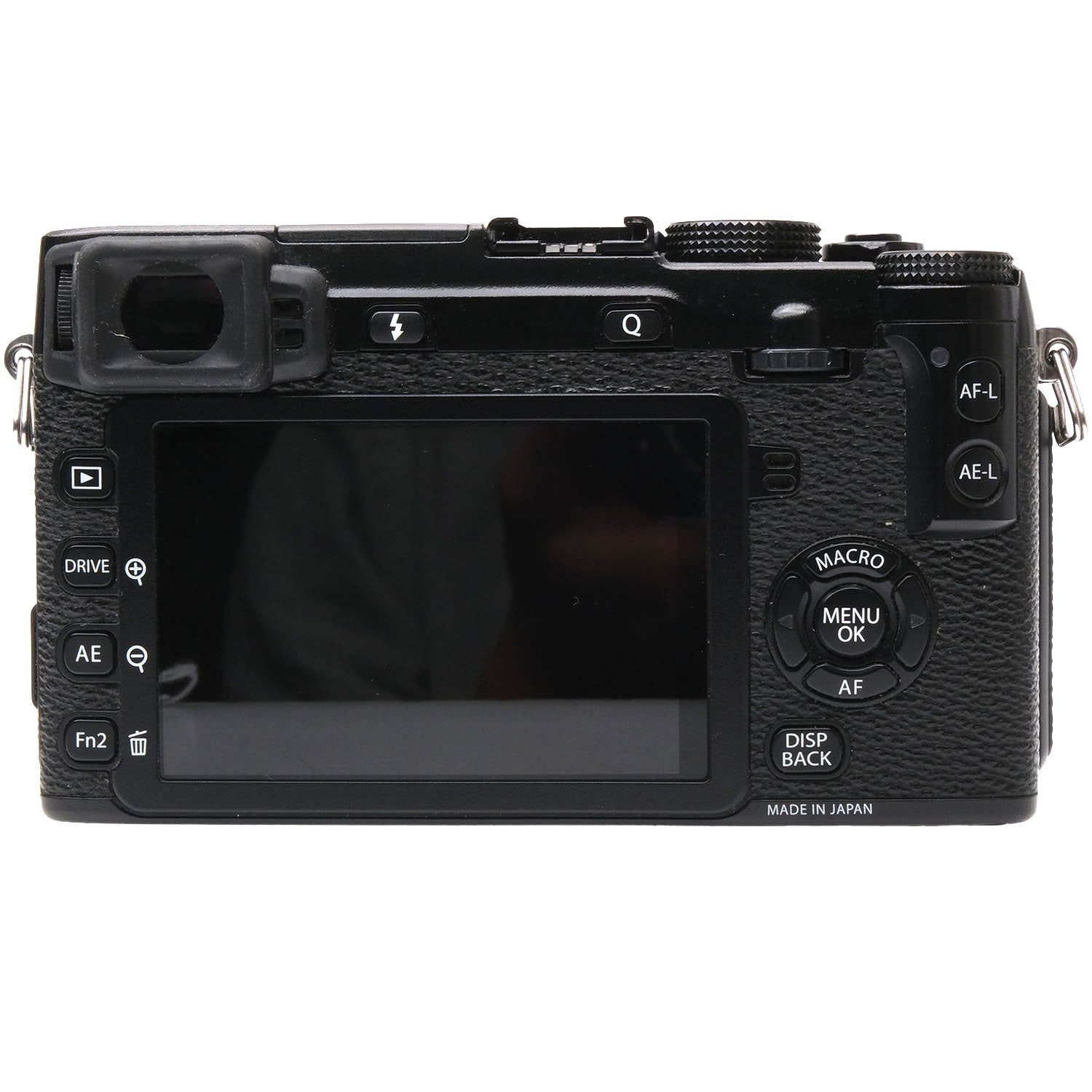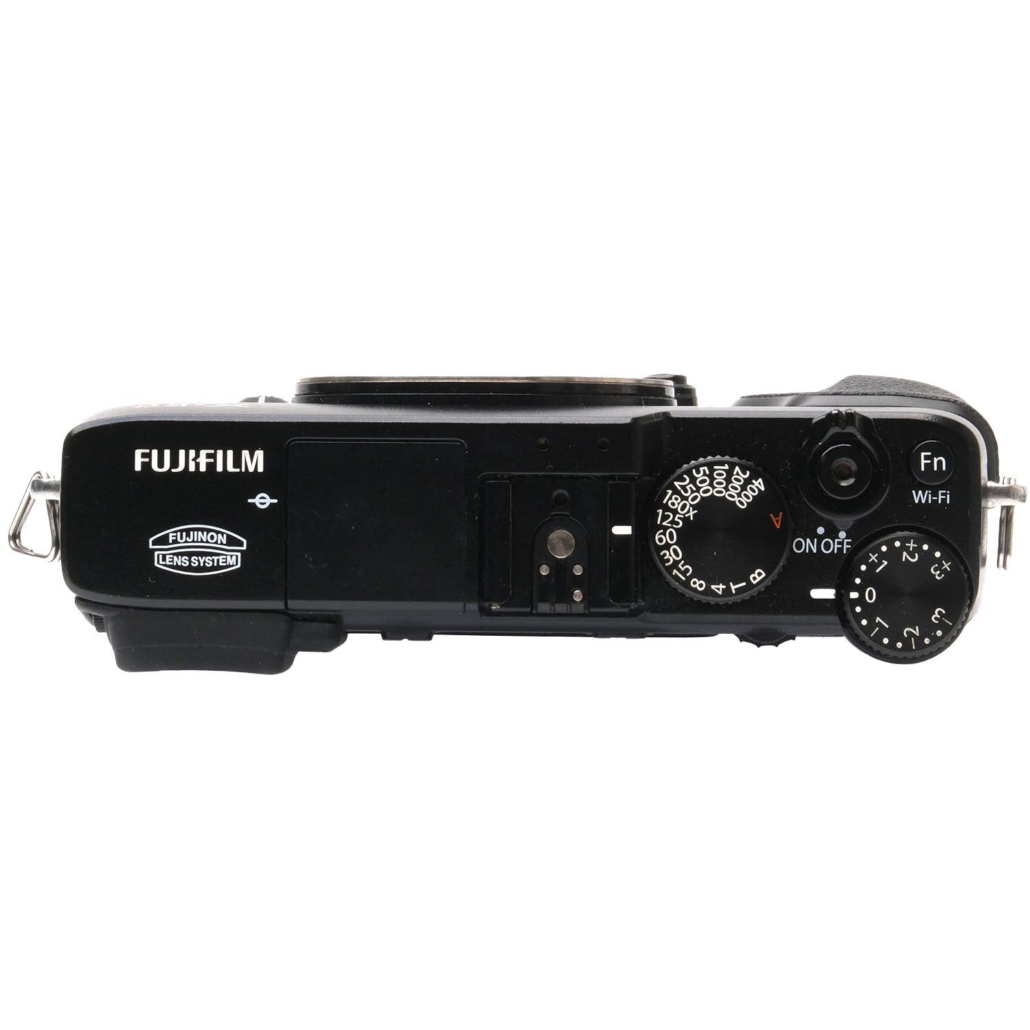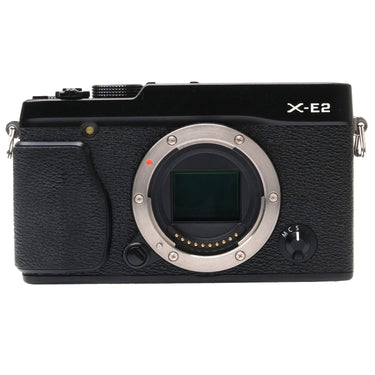 This Fujifilm X-E2 (Black), #43A50269, is in good condition with some handling wear. I rate it cosmetically an (8+). The camera is in proper working order; the viewfinder is clear, the sensor is unmarked, the memory card slot reads & writes, and the built-in flash opens, closes, and fires. This camera includes a third-party battery, a third-party USB dual-battery charger, body cap, and a third-party thumb support. Please refer to the photos for details.