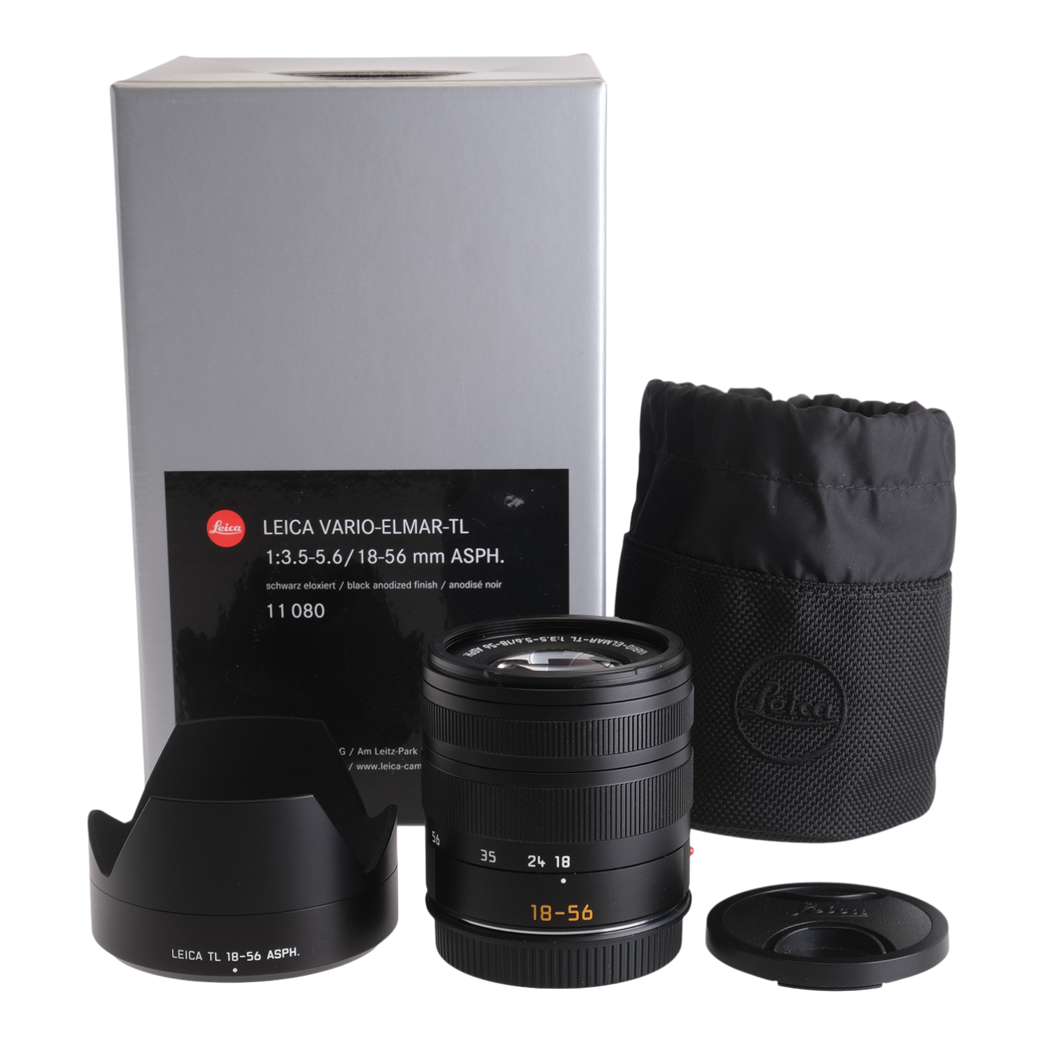 This Leica 18-56mm f3.5-5.6 Vario-Elmar-TL ASPH Lens #4353461, is in excellent cosmetic condition with slight signs of handling wear found throughout, please see photos for visual reference. Cosmetically, this lens has been rated at a (9+) condition. This lens is in proper working order; the focus ring and zoom turns smoothly, and the glass is clean and clear with no signs of haze, fungus, or marks present. This lens comes boxed with a lens case, a lens shade, front cap, and rear cap. This lens is ready for use!