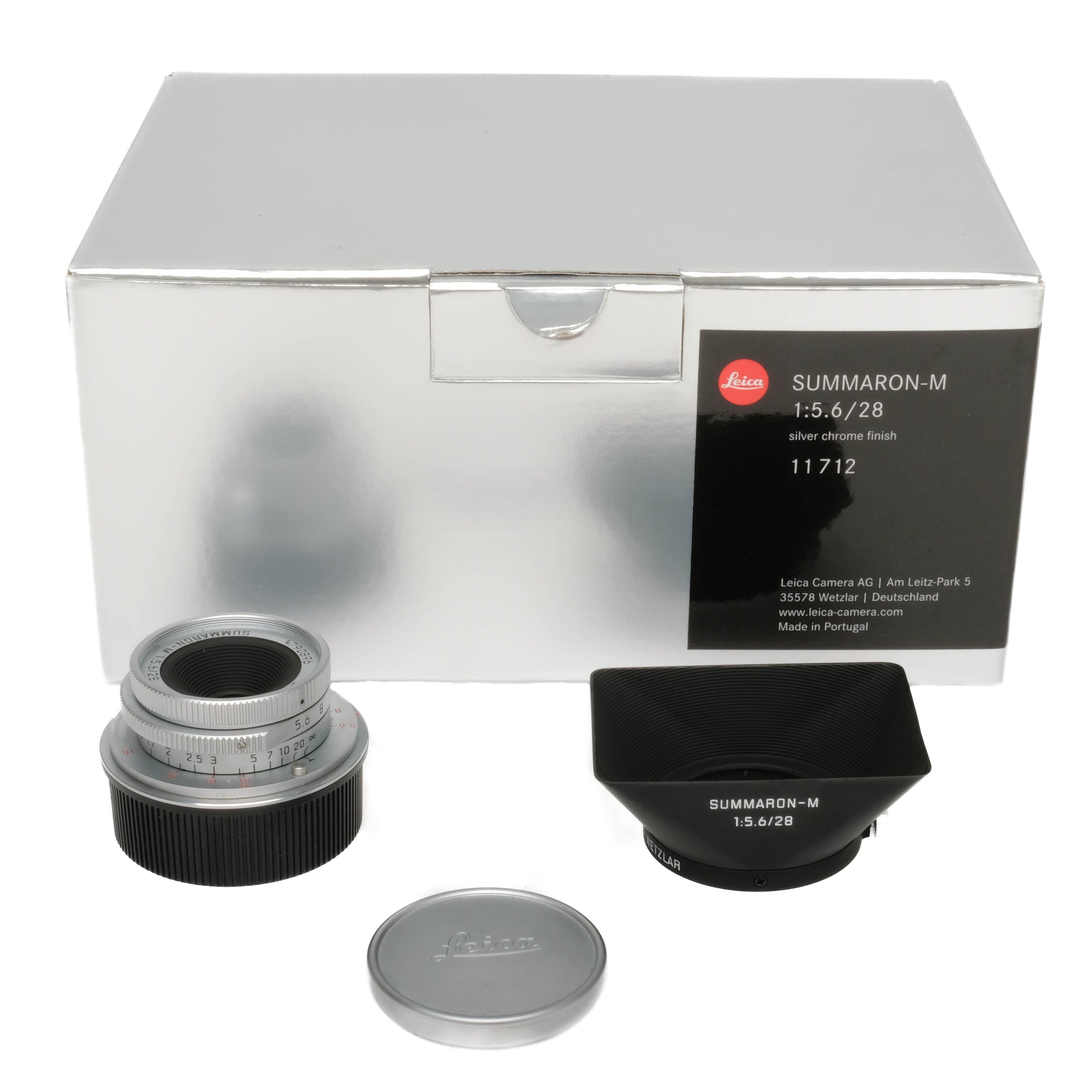 This Leica 28mm f5.6 Summaron-M is in excellent cosmetic condition with faint handling wear found throughout, please see photos for visual reference. Cosmetically, this lens has been rated at a (9+) condition. This lens is in proper working order; the aperture and focus are smooth, and the glass is clean and clear with no signs of fungus, haze, or marks present. This lens includes the box, front/rear caps and hood.