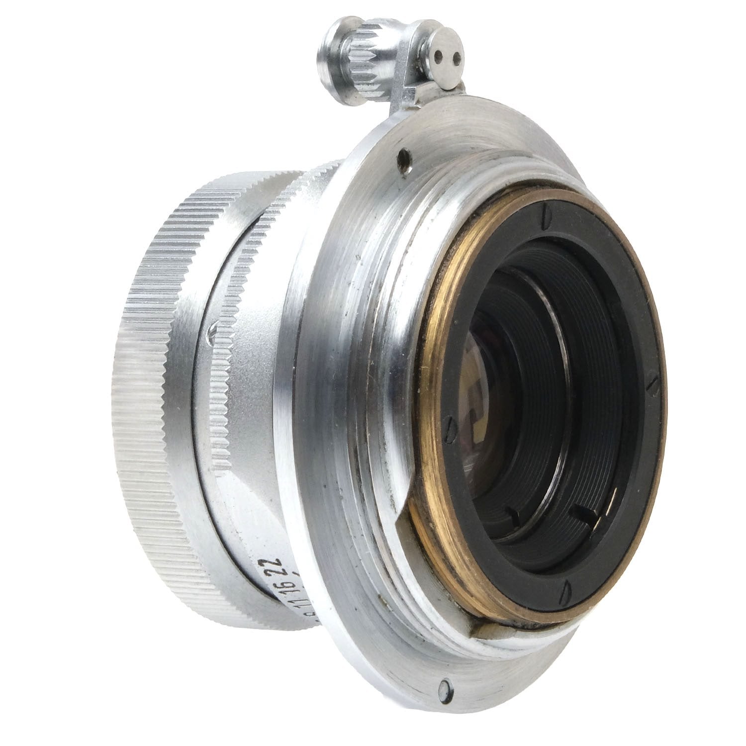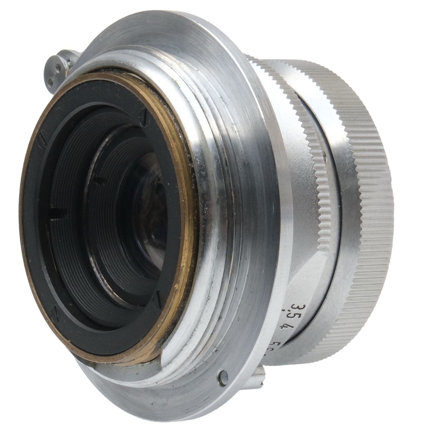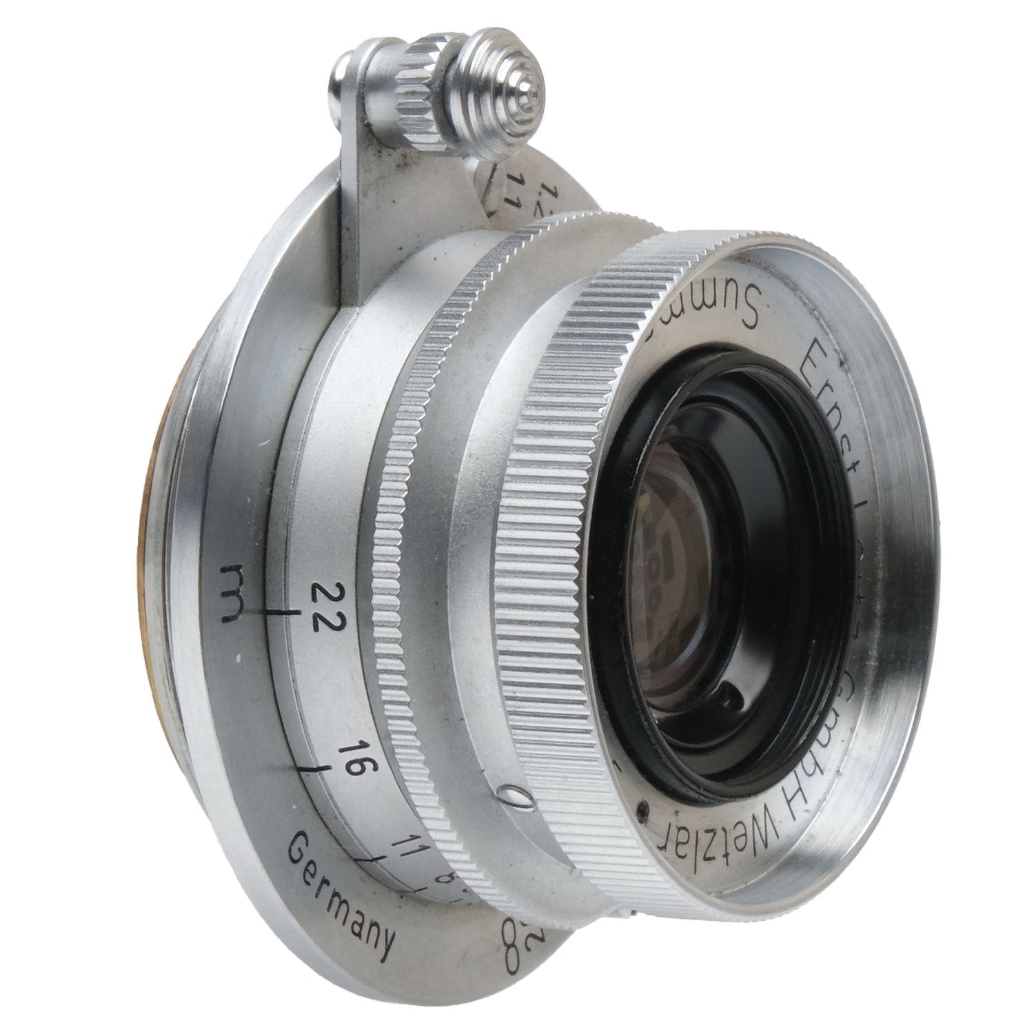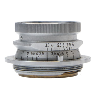 This Leica 3.5cm f3.5 Summaron Lens (Silver), #1222463, is in great condition with minor handling wear. I rate it cosmetically a (9+). The focus and aperture rings are smooth, the aperture functions properly, and the glass is clean and clear with no haze, marks, or fungus. There are a few faint specks of dust inside, but they do not affect image quality. This lens is for Leica screw mount/thread mount (LTM) and other E39 bodies. It includes front & rear caps.