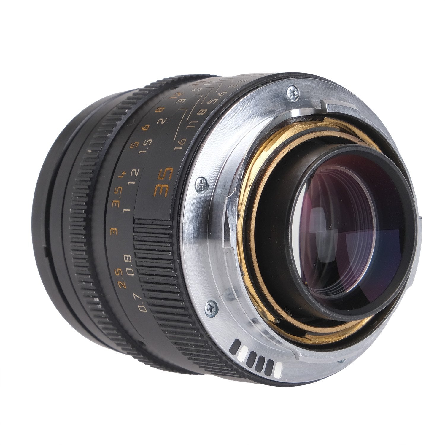 This Leica 35mm f1.4 Summilux-M ASPH I Lens #3670125, is in average cosmetic condition with heavy signs of handling wear found throughout, please see photos for visual reference. Cosmetically, this lens has been rated at a (8) condition. This lens is in proper working order; the aperture and focus turn smoothly, and the glass is clean and clear with no signs of fungus, haze, or marks present. This lens comes with a front cap and a rear cap only. This lens is ready for use!