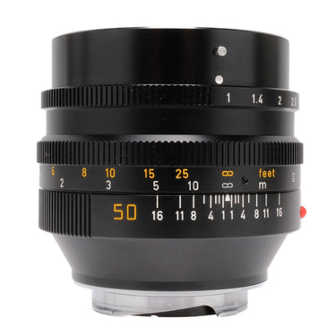 This Leica 50mm f/1 Noctilux-M is in excellent cosmetic condition with faint handling wear found throughout; please see photos for visual reference. Cosmetically, this lens has been rated at a (9+) condition. This lens is in proper working order; the aperture and focus are smooth, and the glass is clean with no signs of fungus, haze, or marks present. Please note, this lens has internal dust. This lens includes the hood and front/rear caps.