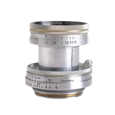 This Leica 5cm f2 Summitar SM Lens #977414, is in average cosmetic condition with signs of handling wear, please see photos for visual reference. Cosmetically, this lens has been rated at a (8+) condition. This lens is in proper working order; the aperture and focus ring are smooth, and the glass has minor edge haze, as well as minor dust particles/fibers which should not affect image quality. There are no signs of fungus or marks present. This lens comes with a front and a rear cap only. This lens is ready for use!