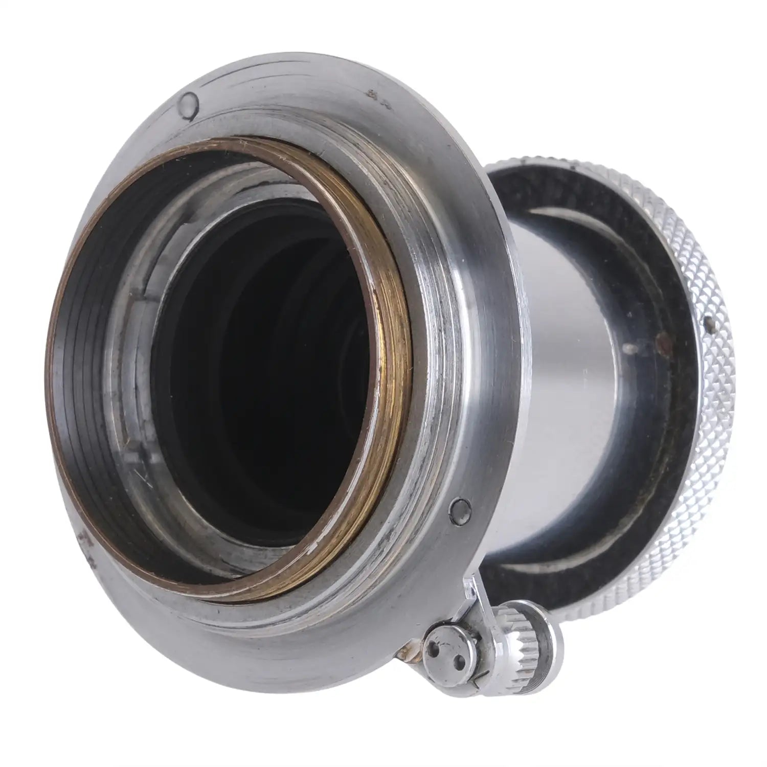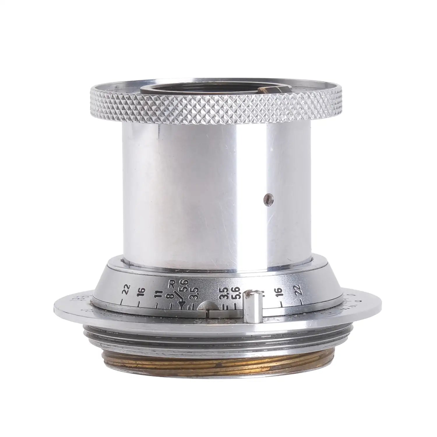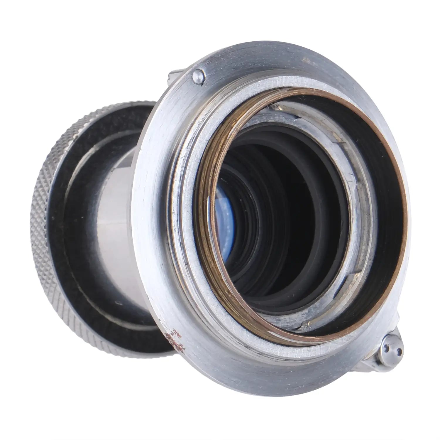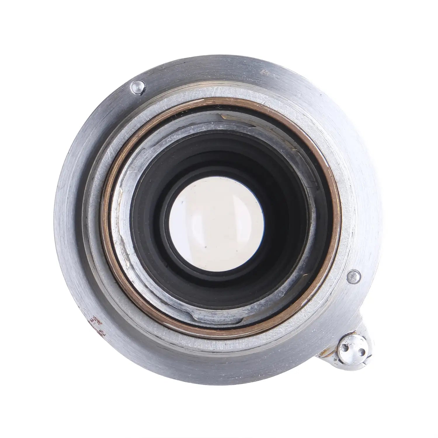 This Leica 5cm f3.5 Elmar SM Lens #749936, is in very good cosmetic condition with minor signs of handling wear found throughout, please see photos for visual reference. Cosmetically, this lens has been rated at a (9) condition. This lens is in proper working order; the aperture tab and focus turn smoothly, and the glass has faint haze which should not affect image quality. There are no signs of fungus or marks present. This lens comes with a front can rear cap only. This lens is ready for use!