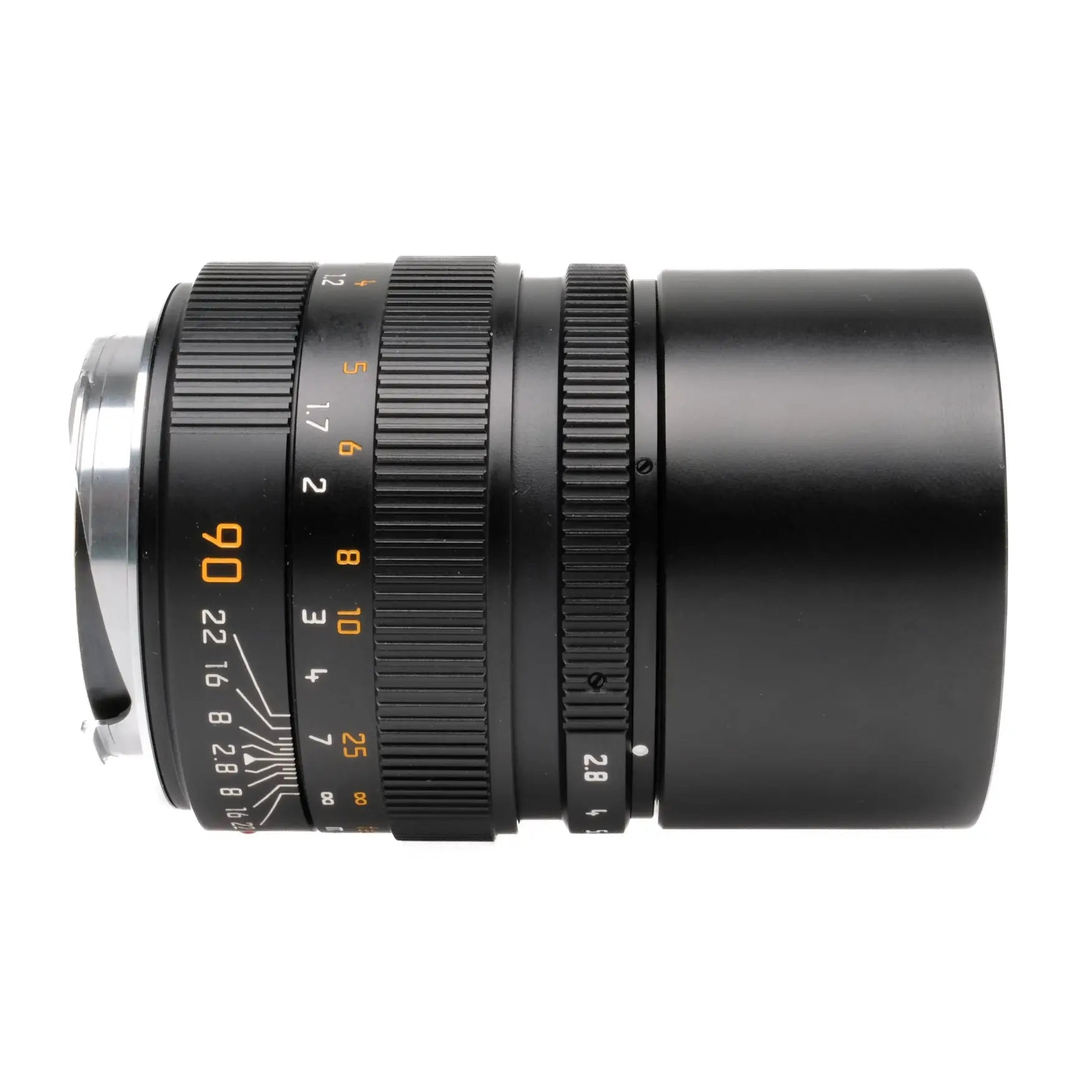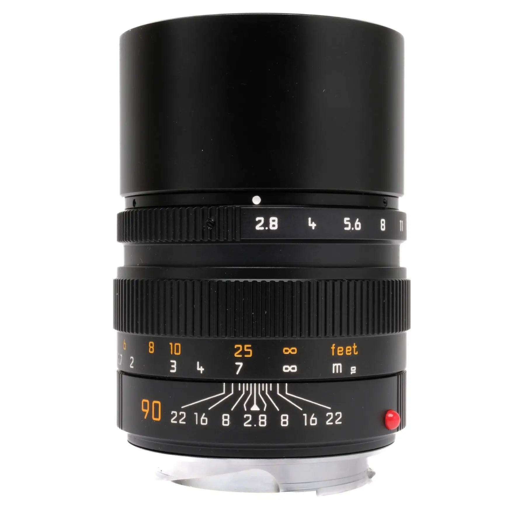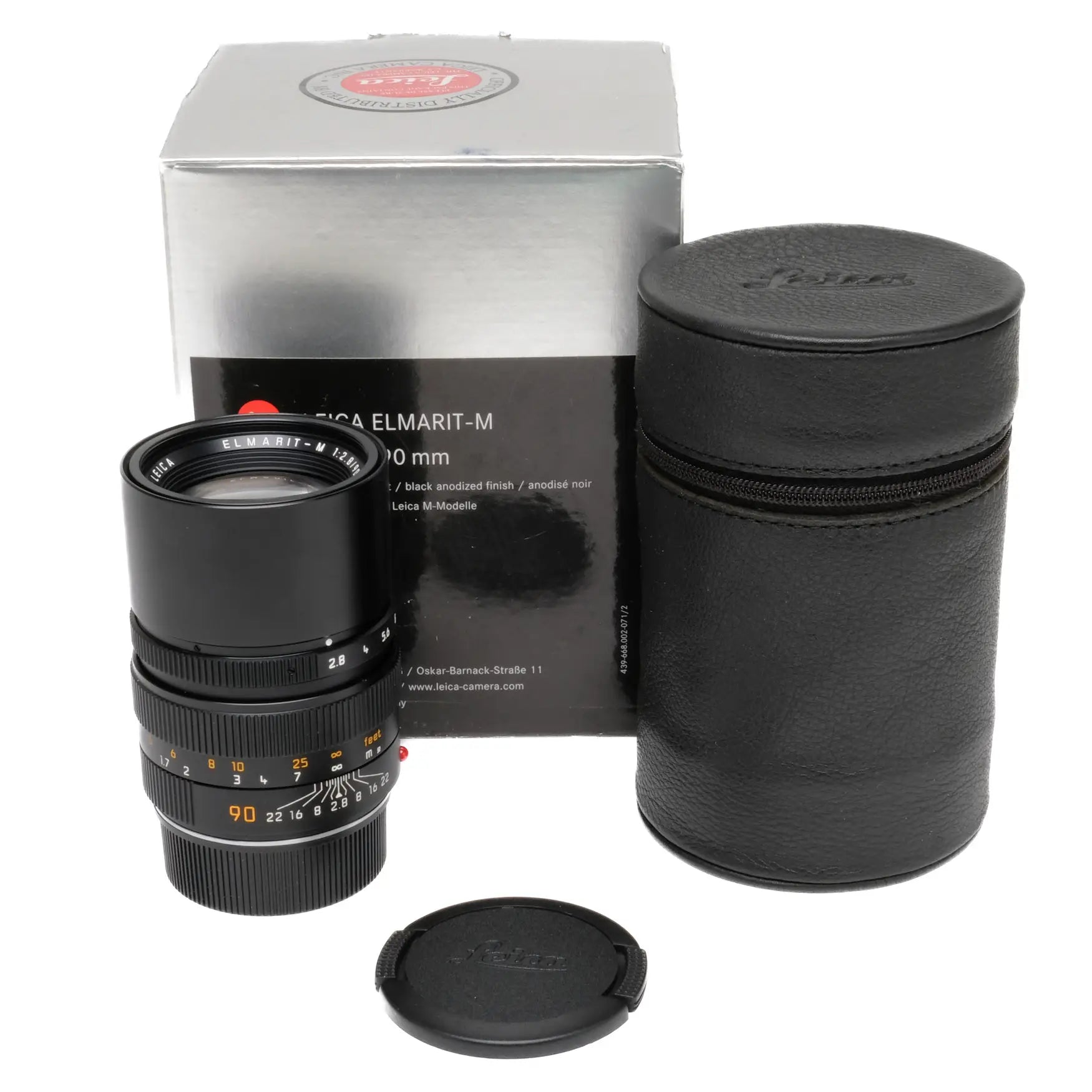This Leica 90mm f2.8 Elmarit-M is in excellent cosmetic condition with faint handling wear throughout; please see photos for visual reference. Cosmetically, this lens has been rated at a (9+) condition. This lens is in proper working order; the focus and aperture are smooth. The glass is clean and clear with no signs of fungus, haze, or marks present. This lens includes front/rear cap, soft case and box.