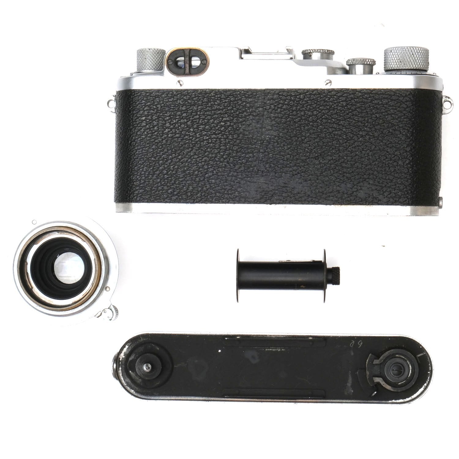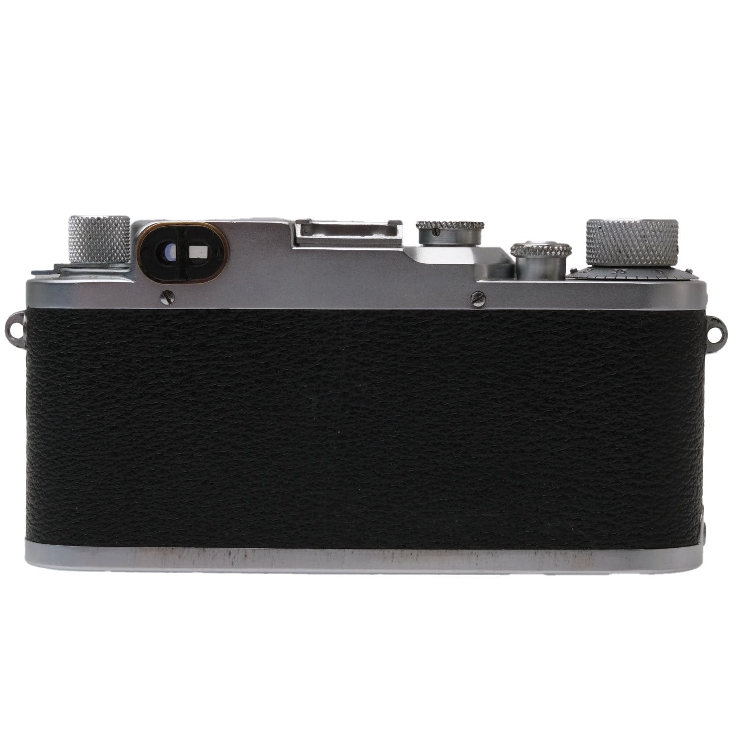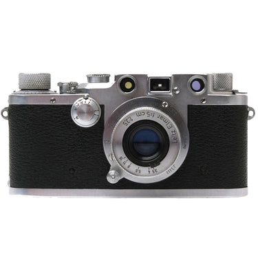 This Leica IIIc (Silver), #415655, is in great condition with minor handling wear. I rate it cosmetically a (9). The camera is in proper working order; film advances properly, the viewfinder is clear, the shutter is accurate at all speeds, and the rangefinder is bright & accurate. The included Leica 5cm f3.5 Elmar lens, #633632, is in similar condition, also rated a (9). The lens extends and retracts and the focus ring is smooth, but the aperture tab is a bit stiff. The aperture functions properly, and the glass is clean and clear with no haze, marks, or fungus. There are a few faint specks of dust inside, but they do not affect image quality. The body and lens were serviced by DAG in 2024. It includes a front lens cap and a leather Leica ever-ready case with a strap. Please refer to the photos for details.