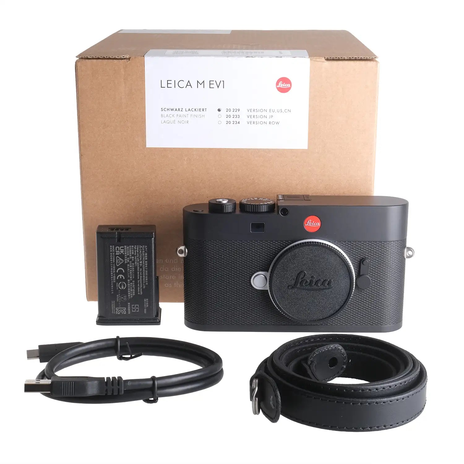This Leica M EV1 Camera -Open Box #6121981, is in excellent cosmetic condition with very slight signs of handling found throughout, please see photos for visual reference. Cosmetically, this camera has been rated at a (10-) condition. This camera is in proper working order; the EVF is bright and accurate, the sensor is unmarked, and the memory card slot reads and writes. This camera comes boxed with a neck strap, a battery, and a usb-c cable for charging. This camera is an open box unit and comes with a full Leica warranty. This camera is ready for use!