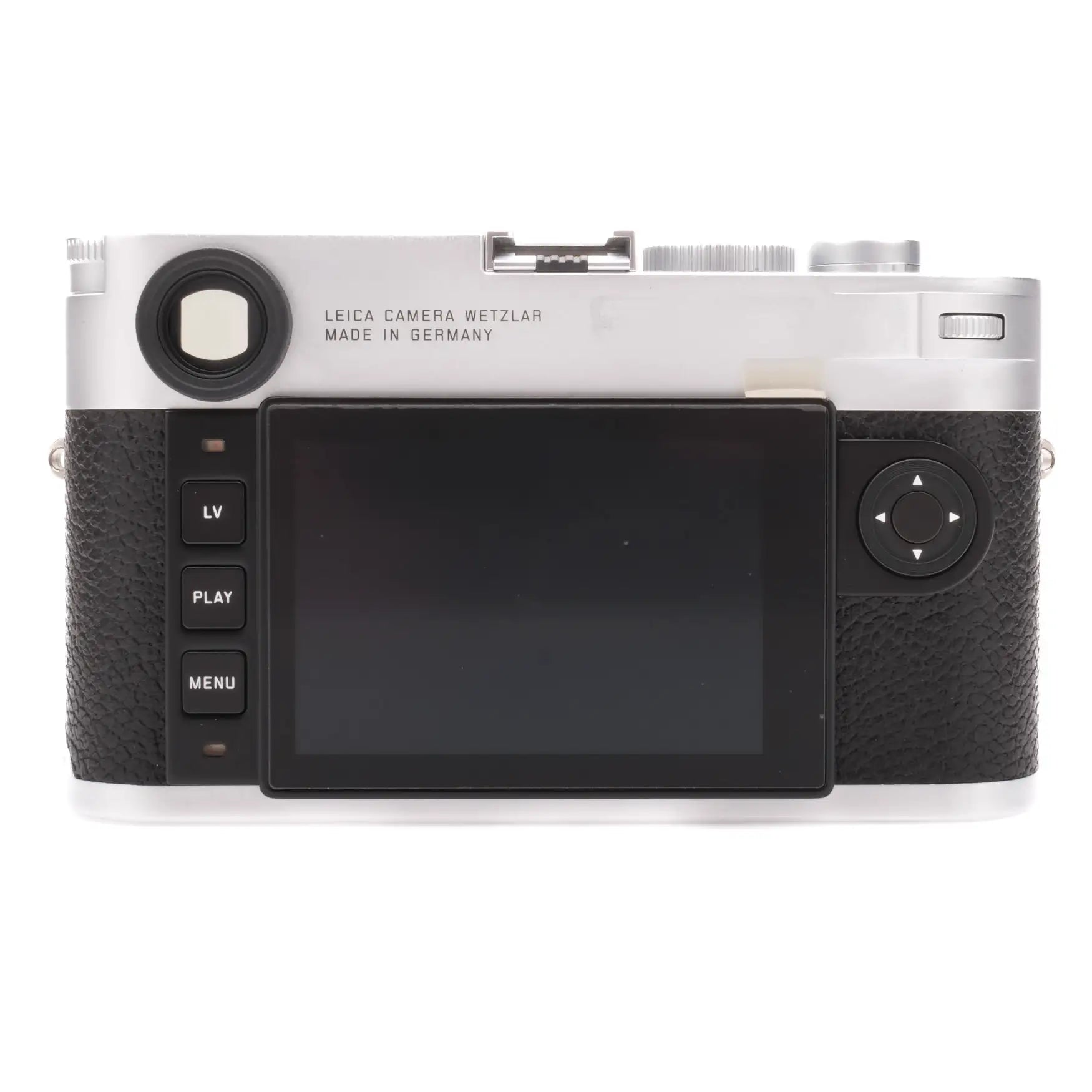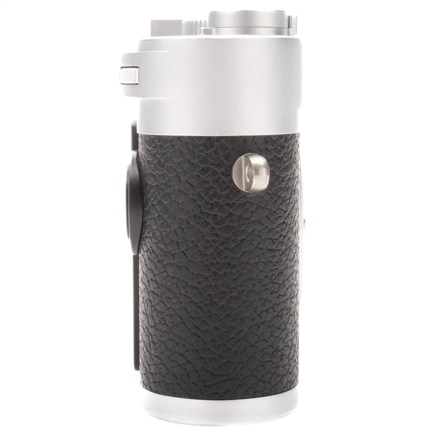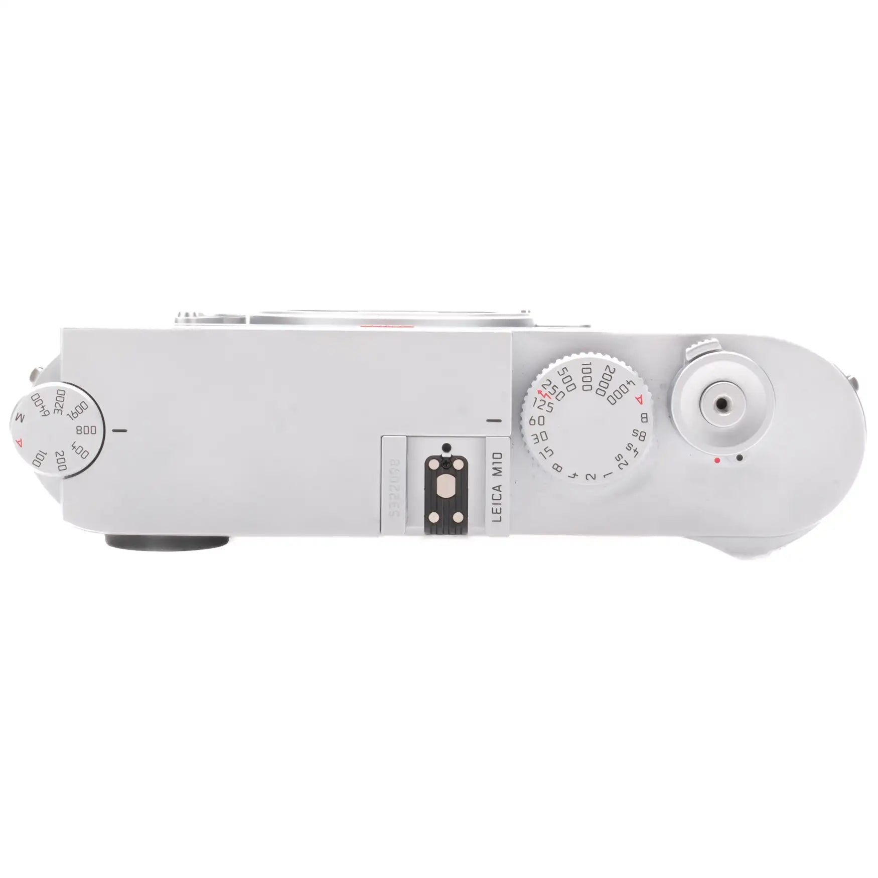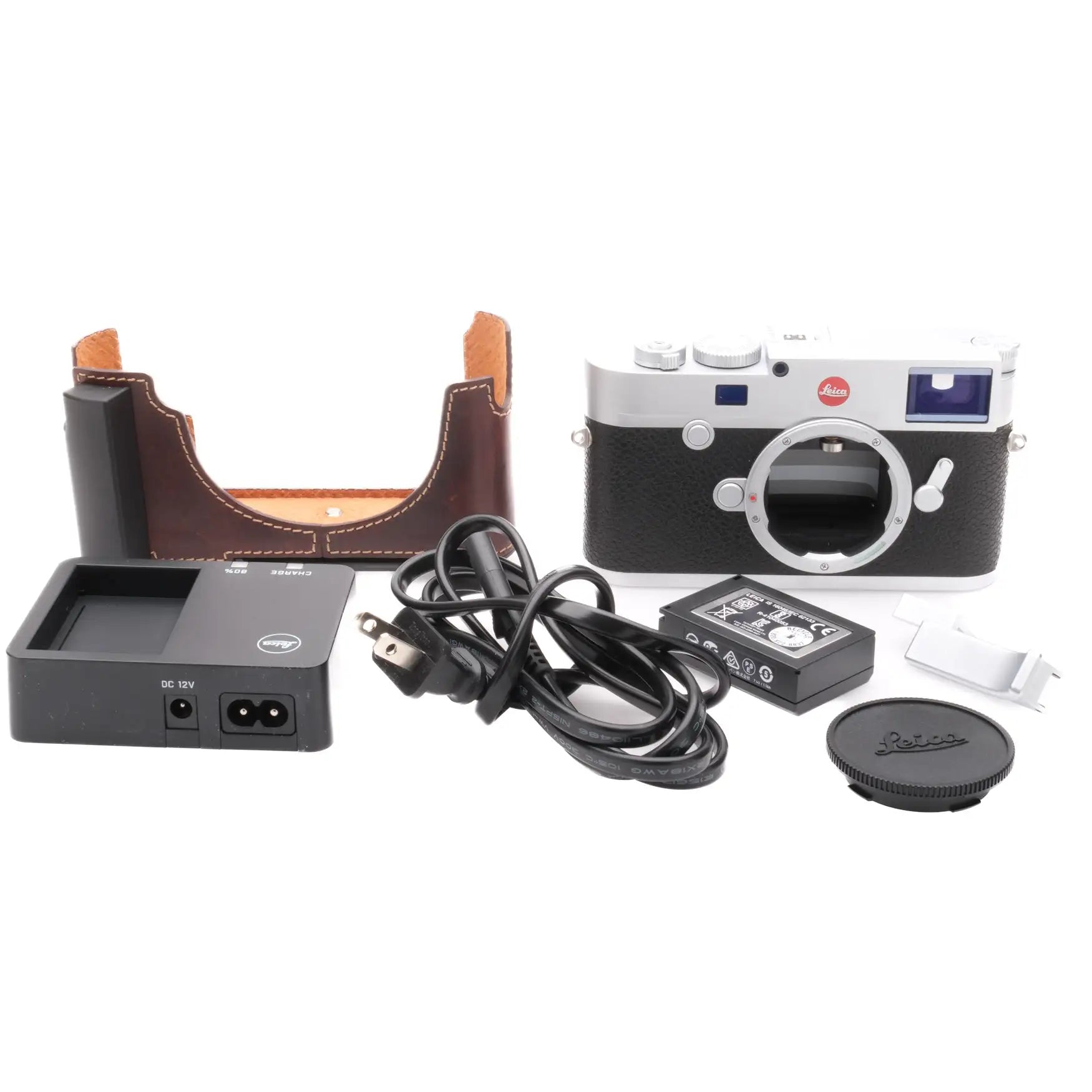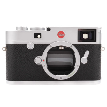 This Leica M10 Silver is in excellent cosmetic condition with only faint handling wear found throughout; please see photos for visual reference. Cosmetically, this camera has been rated at a (9+) condition. This camera is in proper working order; the rangefinder is clear and accurate, the sensor is unmarked, and all functions operate as intended. This camera includes the battery, charger, thumb support, and half case.