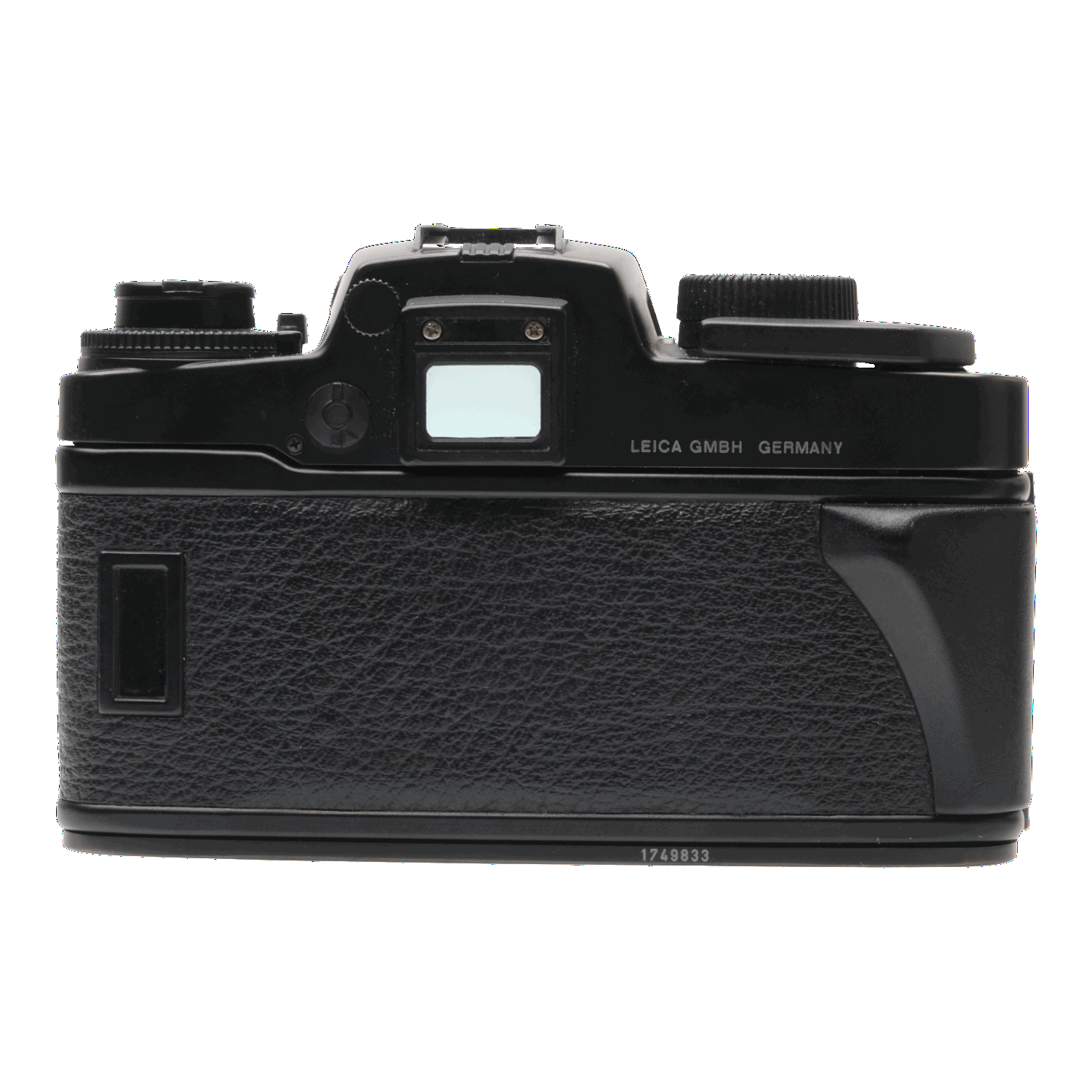 This Leica R6 (Black), #1749833, is in great condition with minor handling wear. I rate it cosmetically a (9). The camera is in proper working order; film advances properly, the viewfinder is clear, the shutter is accurate at all speeds, the meter functions, and the battery compartment is corrosion-free. This camera includes a body cap. It uses either two (2) 1.5V batteries or one (1) 3V battery (not included). Please refer to the photos for details.