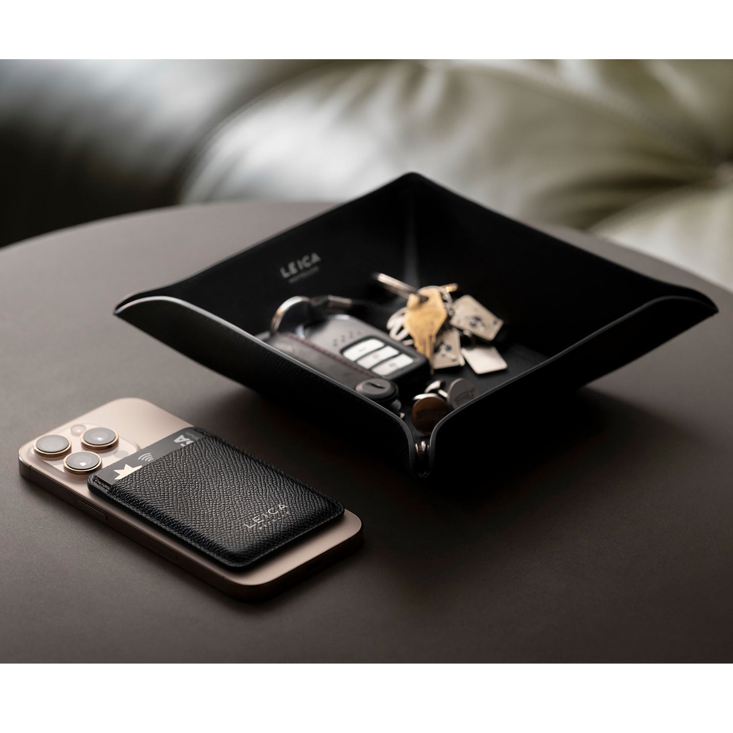 The Leica Tray is a timeless helper for your everyday life. It offers space for keys, mobile phones, loose change and other small items that you quickly empty from your pockets in the home entrance area or in the office. At the same time, it serves as a stylish, modern eye-catcher in any room.