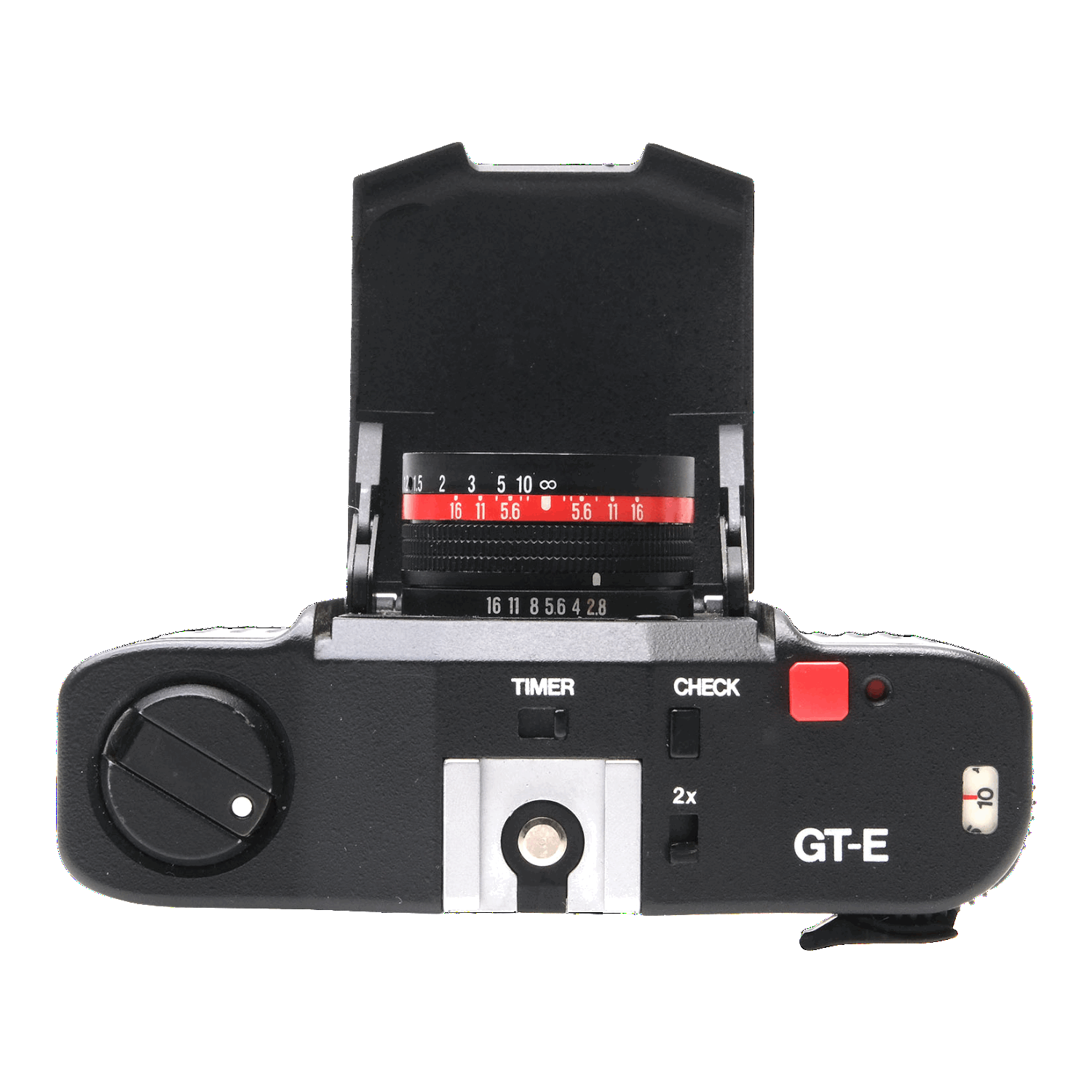 This Minox 35 GT-E, #5720997, is in good condition with minor handling and edge wear. I rate this cosmetically at a (9.) This camera is in proper working order, film advances smoothly, the shutter and meter are accurate at all speeds, and the rewind is smooth. The viewfinder is clean and bright and all data is easily readable. The lens is clean and clear with no marks, haze, or fungus. The focus and aperture rings are both smooth, and the aperture functions properly. This camera uses two (2) 3V CR1/3N batteries (not included.)