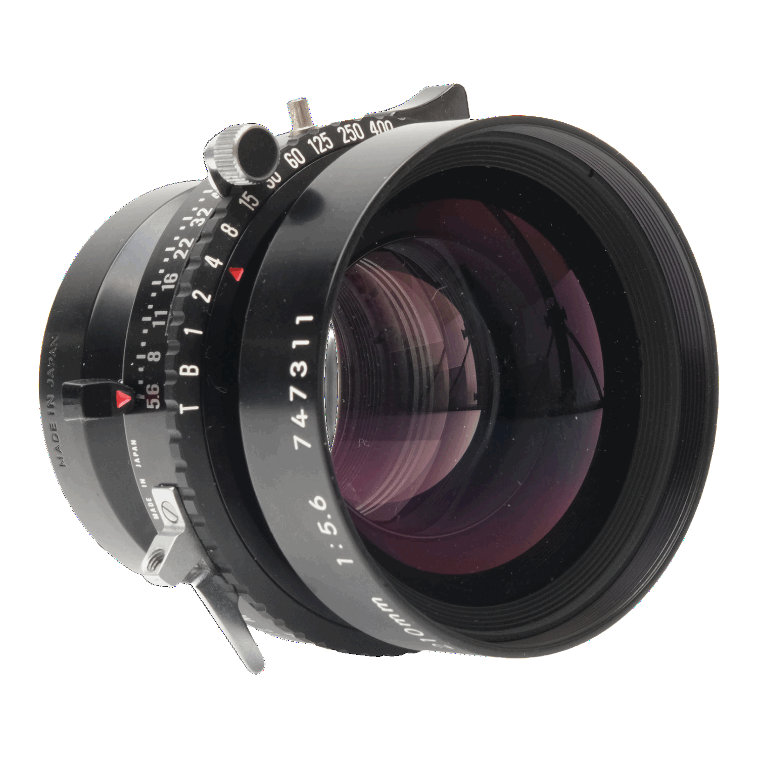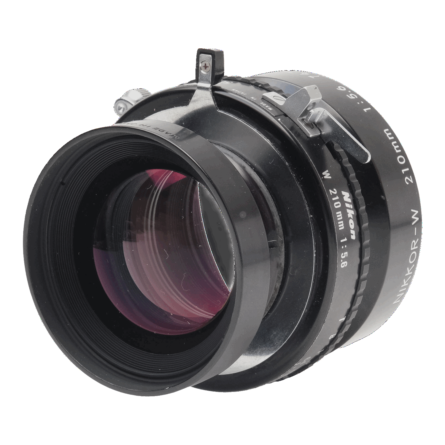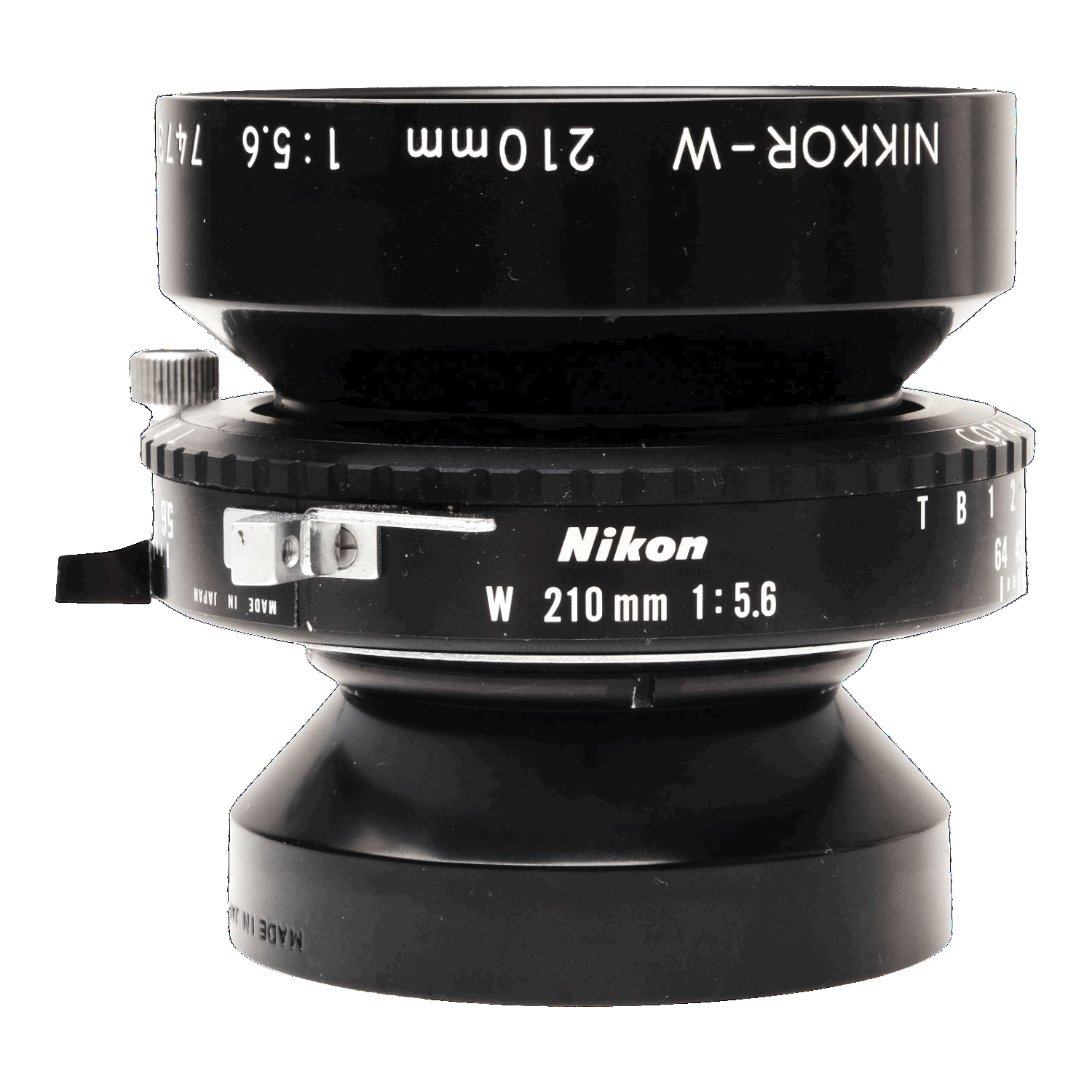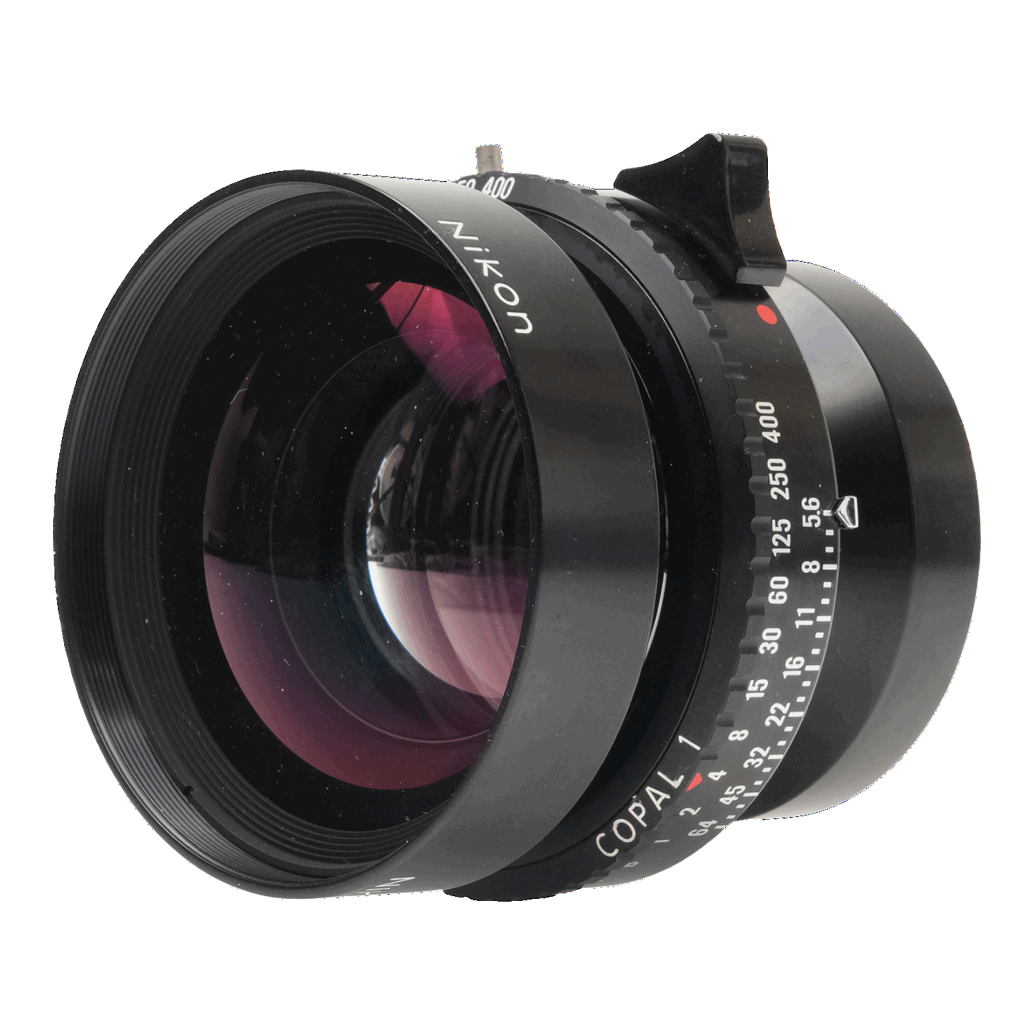 This Nikon 210mm f5.6 Nikkor-W Lens, #747311, is in great condition with minor handling wear. I rate it cosmetically a (9+). The glass is clean and clear with no haze, marks, or fungus. There are a few faint specks of dust inside, but they do not affect image quality. This lens has coverage up to 5x7", a 70-degree angle of view, and a 295mm image circle at f22. The included Copal 1 shutter, #16862, is in similar condition, also rated a (9+). The shutter speed ring is smooth, but the aperture lever is a bit stiff. The shutter is accurate at all speeds and the aperture functions properly. This lens includes a retaining ring and front & rear caps. Please refer to the photos for details.