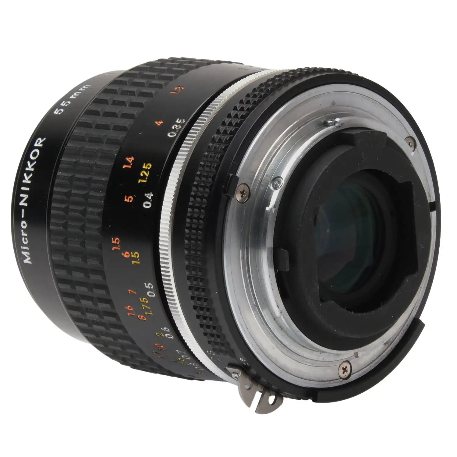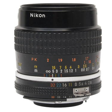 This Nikon AI-S 55mm f2.8 Micro-Nikkor Macro Lens, #437354, is in great condition with minor handling wear. I rate it cosmetically a (9). The aperture ring is smooth, but the focus ring is extremely stiff. The aperture functions properly, and the glass is clean and clear with no haze, marks, or fungus. There are a few faint specks of dust inside, but they do not affect image quality. This lens includes a rear cap, but no front cap. Please refer to the photos for details.
