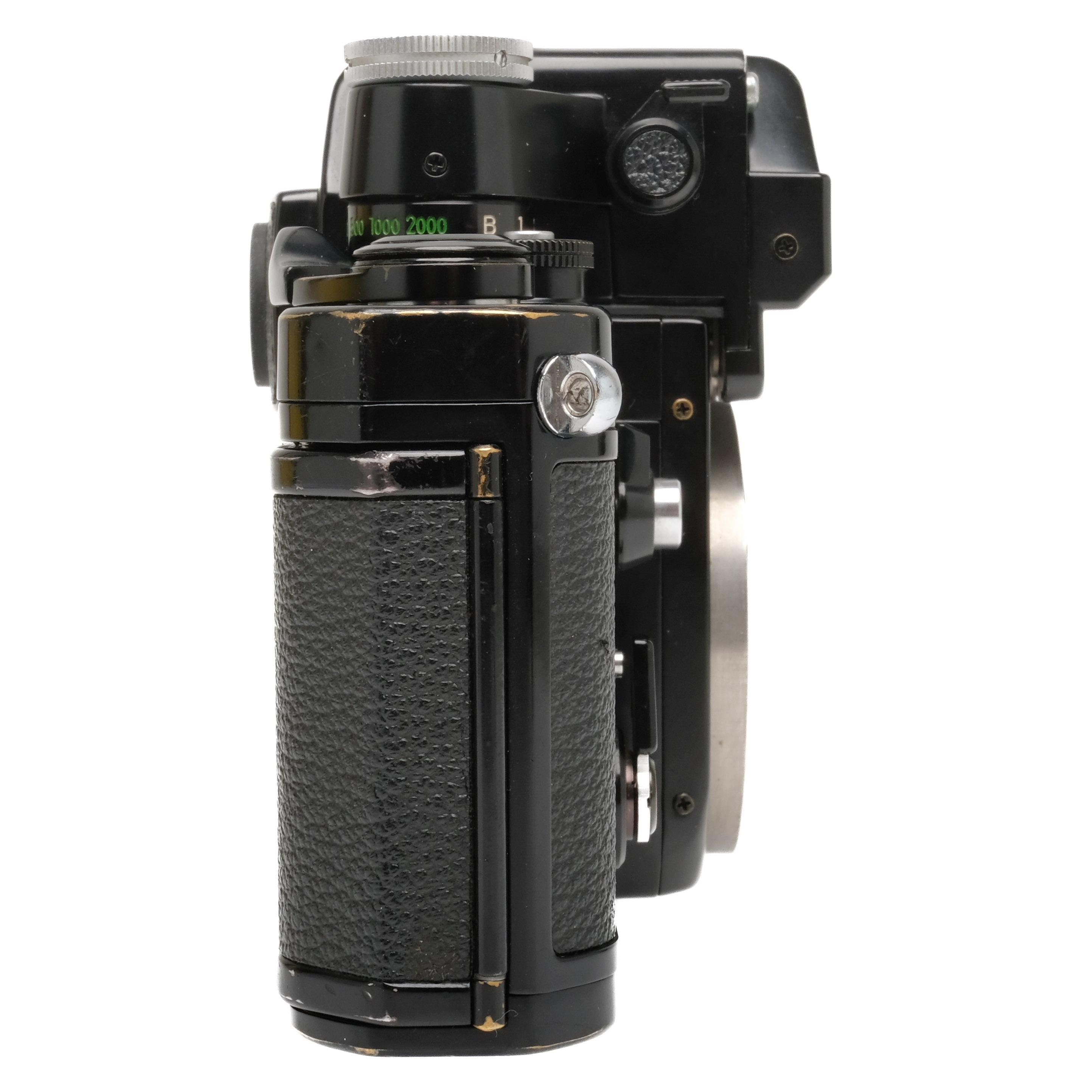 This Nikon F2A Black is in great cosmetic condition with minor handling wear found throughout, please see photos for visual reference. Cosmetically, this camera has been rated at a (9) condition. The camera is in proper working order; film advances and rewinds properly, the viewfinder is clear, and the shutter is accurate at all speeds.
