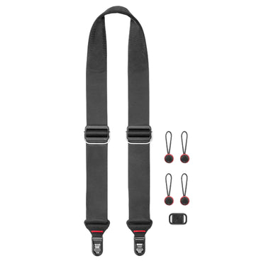 The original Peak Design flagship camera strap, Slide is everything other pro camera straps aren't: beautiful, low-profile, adjustable, quick-connecting, and configurable to your gear. Wear Slide as a sling, neck, or shoulder strap. Internally-padded nylon webbing has a smooth side that glides over clothing in sling mode and a grippy side that prevents slipping in shoulder mode. Dual quick-adjusters provide instant access and easy reconfiguration. The unique Anchor Link system connects quickly and dual points of connection keep your camera more stable than traditional sling straps. Each Anchor holds over 200lbs (90kg), strong enough to keep the heaviest of pro rigs safe. As of 2018, Slide features an improved silicone grip, upgraded webbing, and lower profile strap/hardware transitions. Anchor connectors have been updated to be smaller, faster, and more secure.